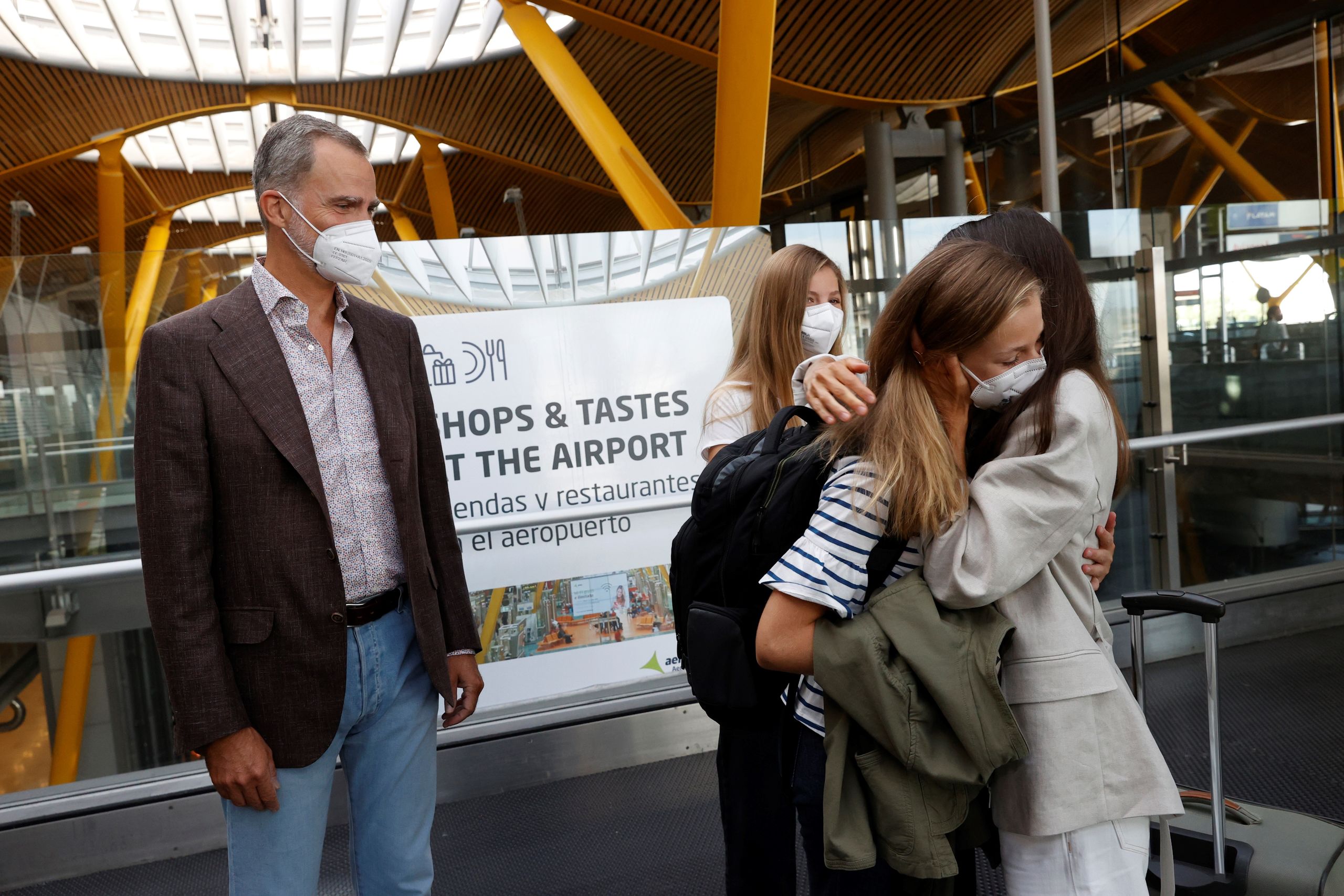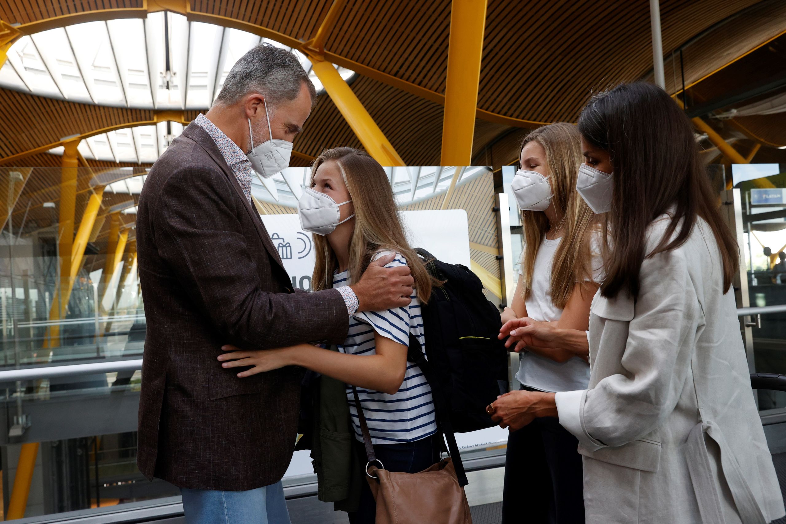 Los reyes don Felipe y doña Letizia, acompañados por la infanta Sofía, se despidieron de Leonor en el aeropuerto. Un emotivo momento captado por las cámaras de Efe en el que no faltaron muchos abrazos y sonrisas.