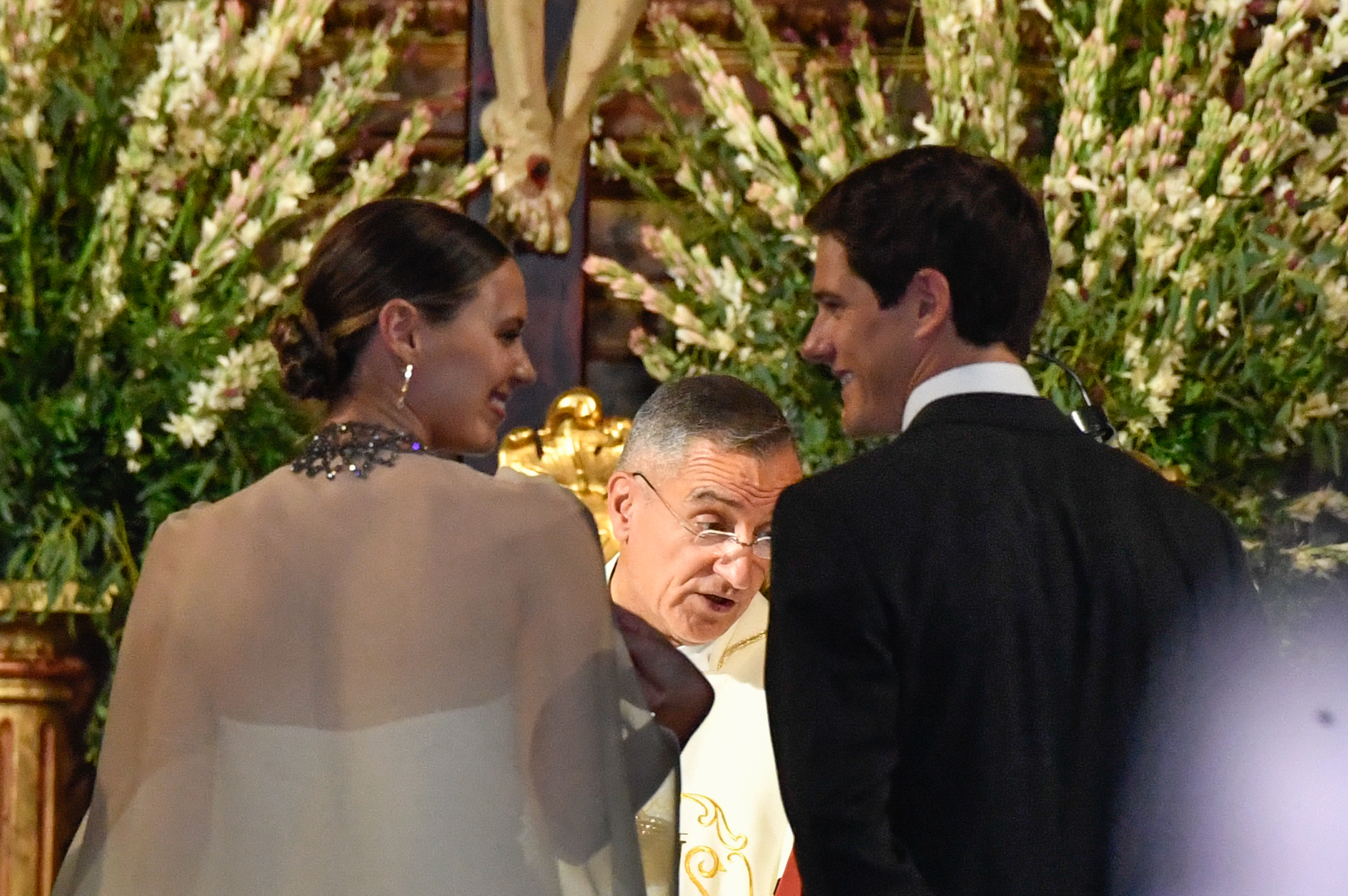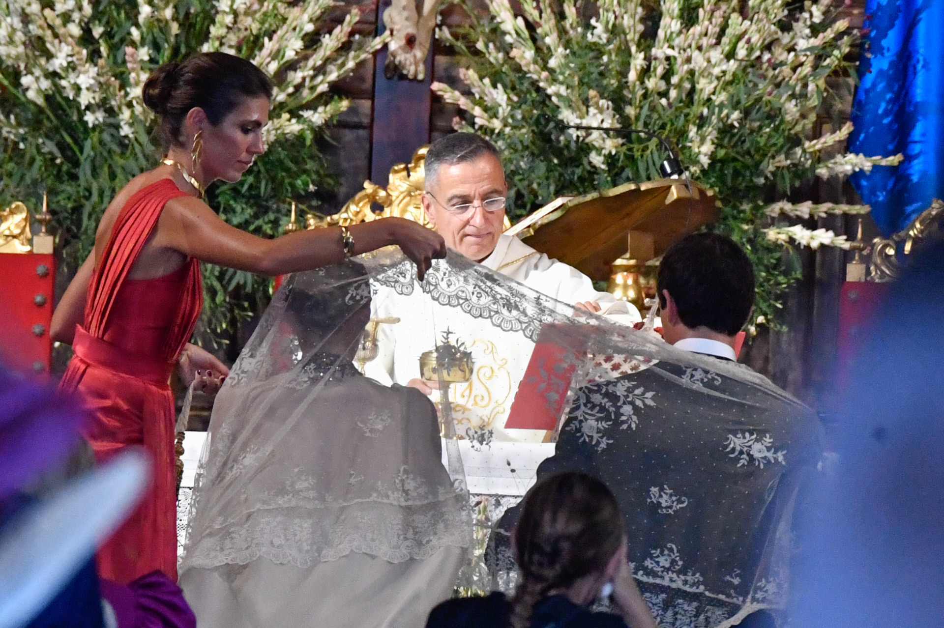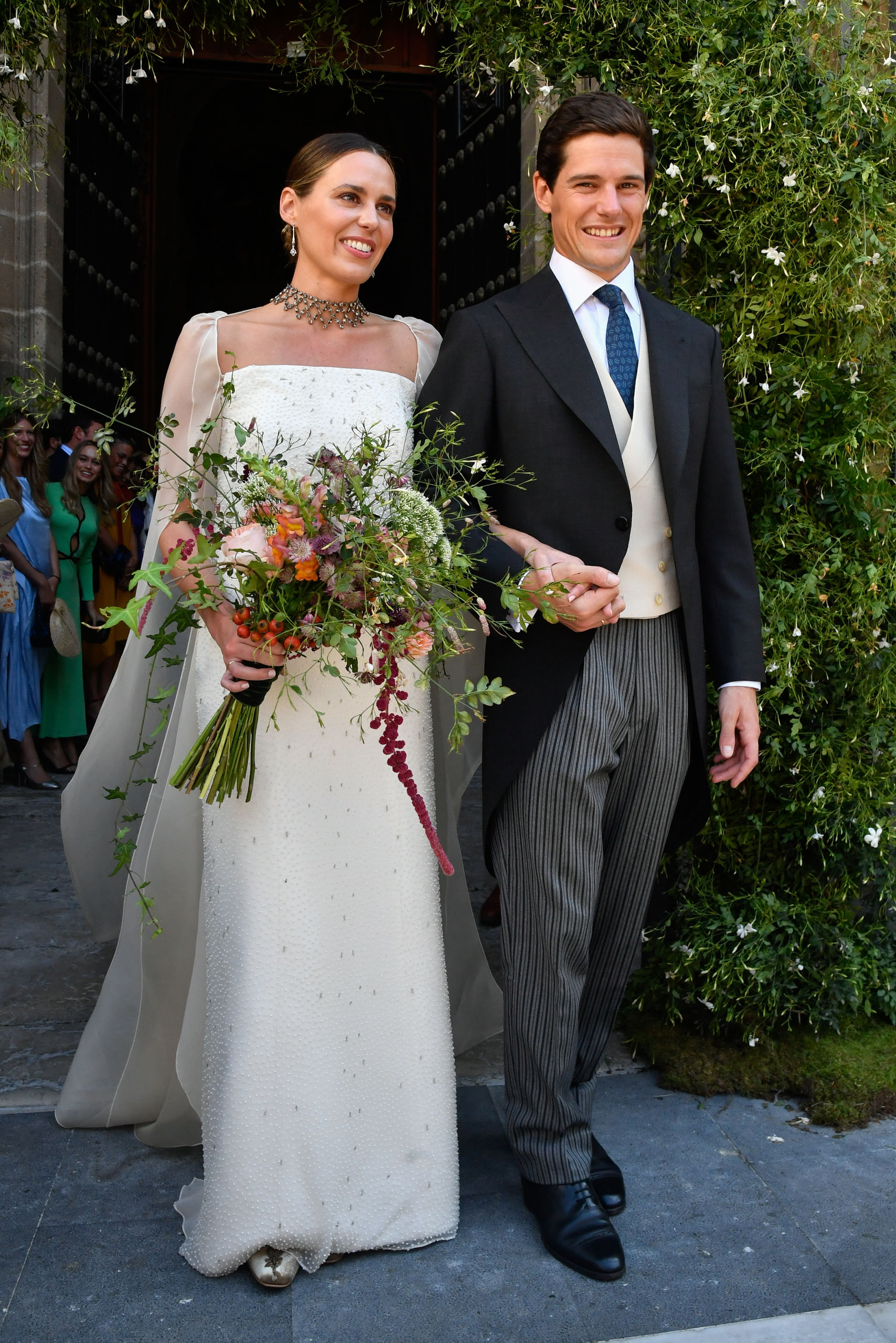 Los vecinos de la zona no quisieron perderse la llegada de los novios y los invitados. Entre gritos de “¡guapa!” y “¡viva la novia!”, Claudia Osborne cruzó la puerta del templo y caminó hacia el altar del brazo de su padre, al que se vio muy emocionado.