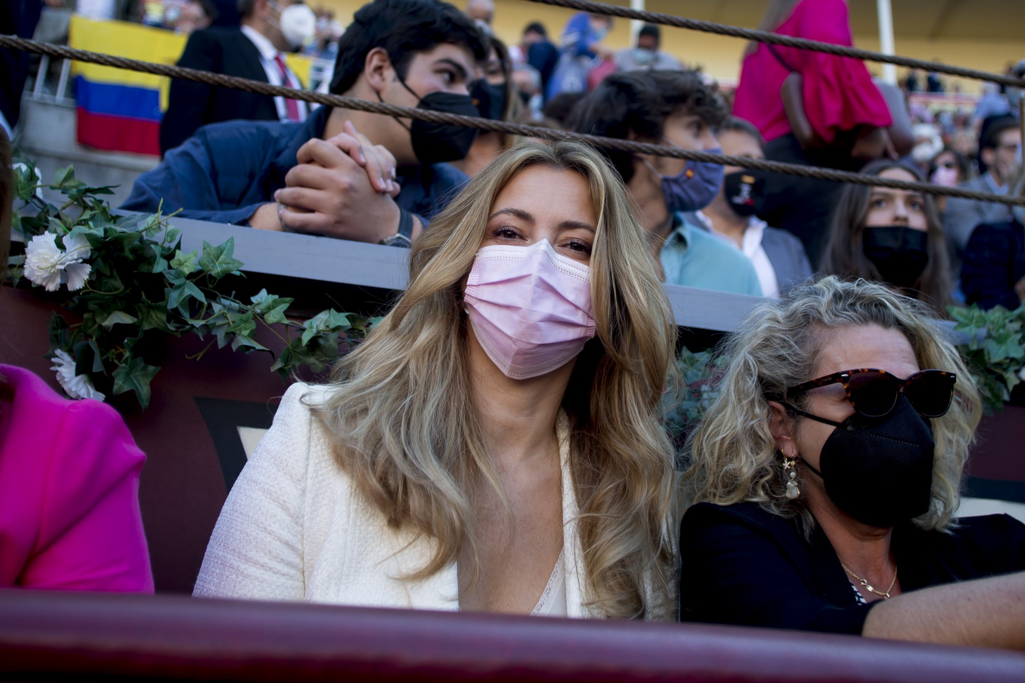 La joven no quiso responder ninguna pregunta relacionada con su hermana Rocío Carrasco y se limitó a disfrutar de la jornada taurina.