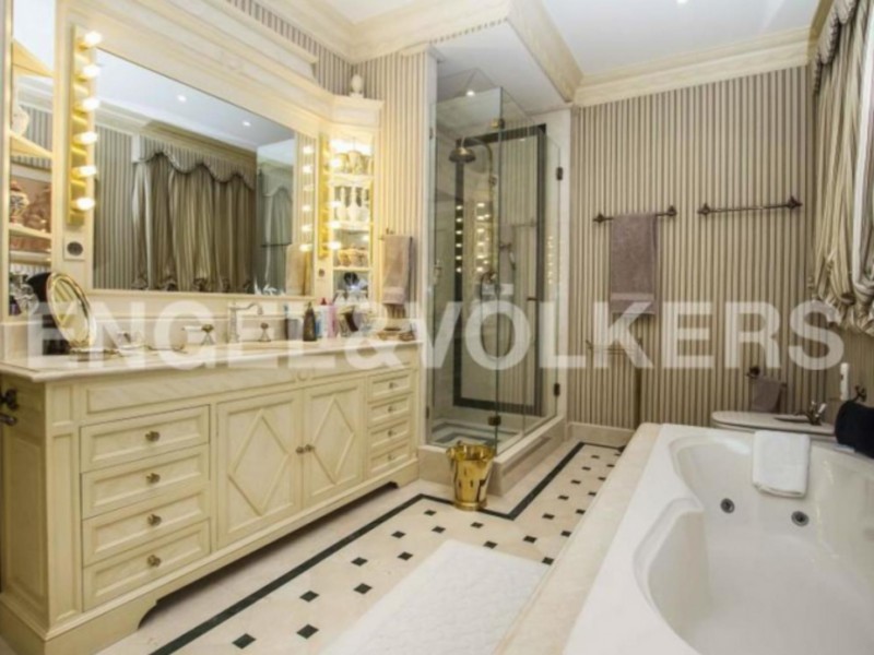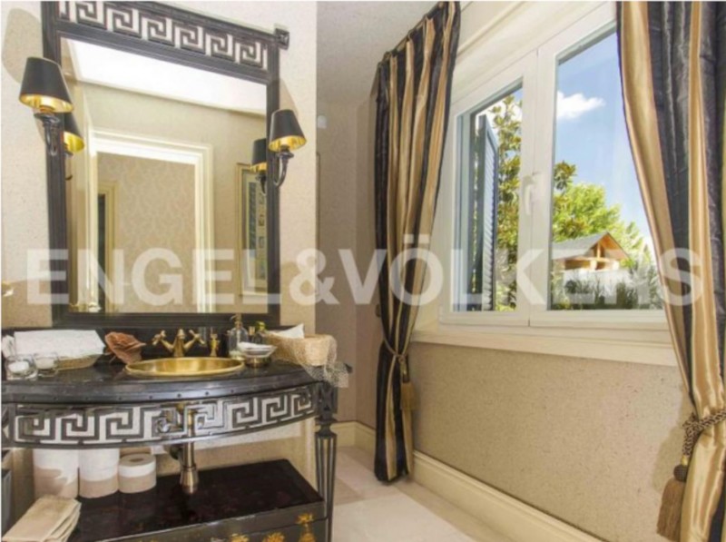 Uno de los impresionantes baños (tiene 15) que hay en la mansión, donde predomina el mármol, dándole un aire distinguido y señorial. También dispone de bañera con hidromasaje y ducha.