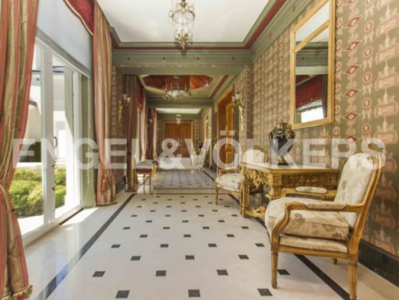 El inmenso pasillo de estilo barroco une la vivienda principal con la casa de invitados.