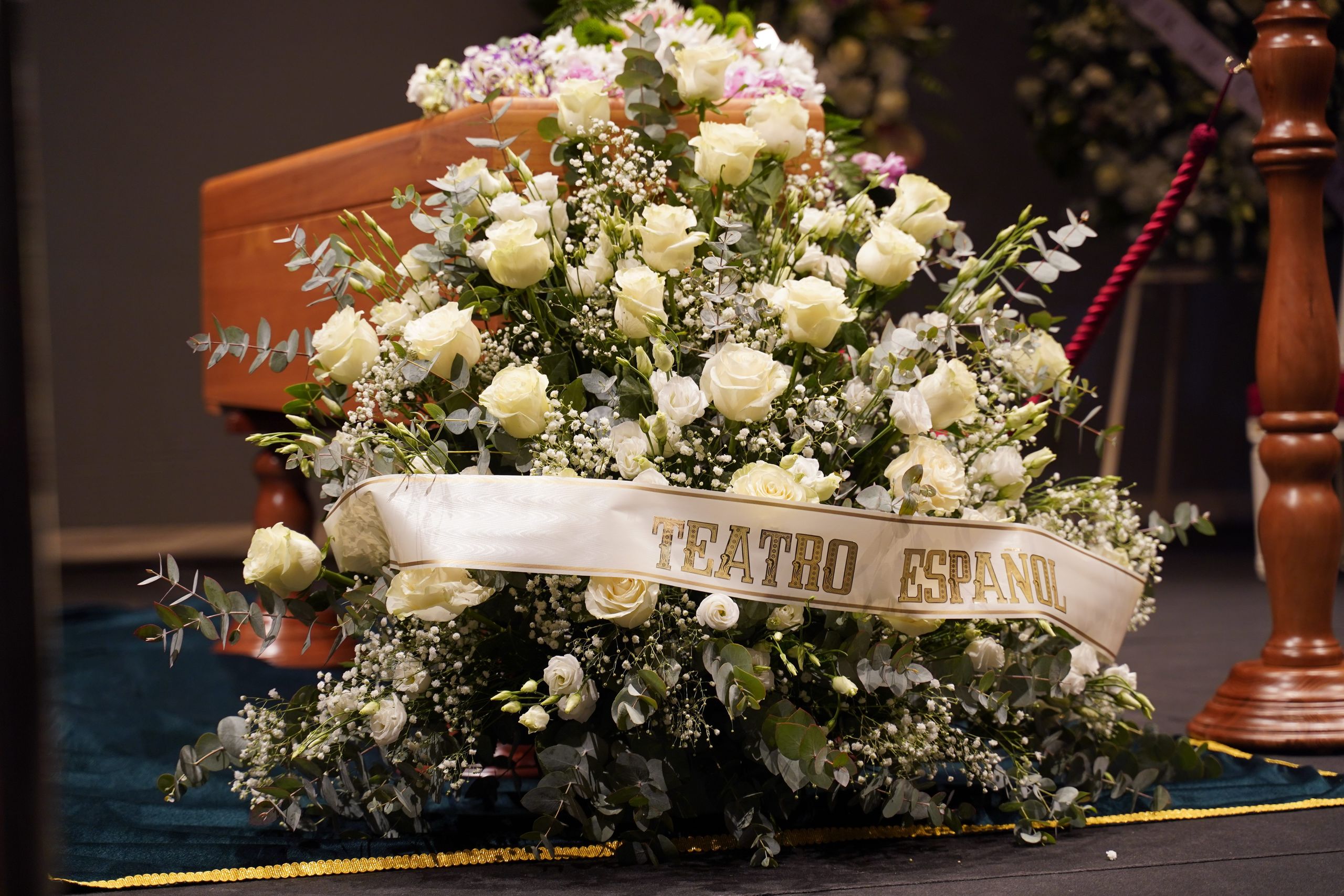 Un ramo de flores de gran tamaño ante el féretro de la conocida actriz.
