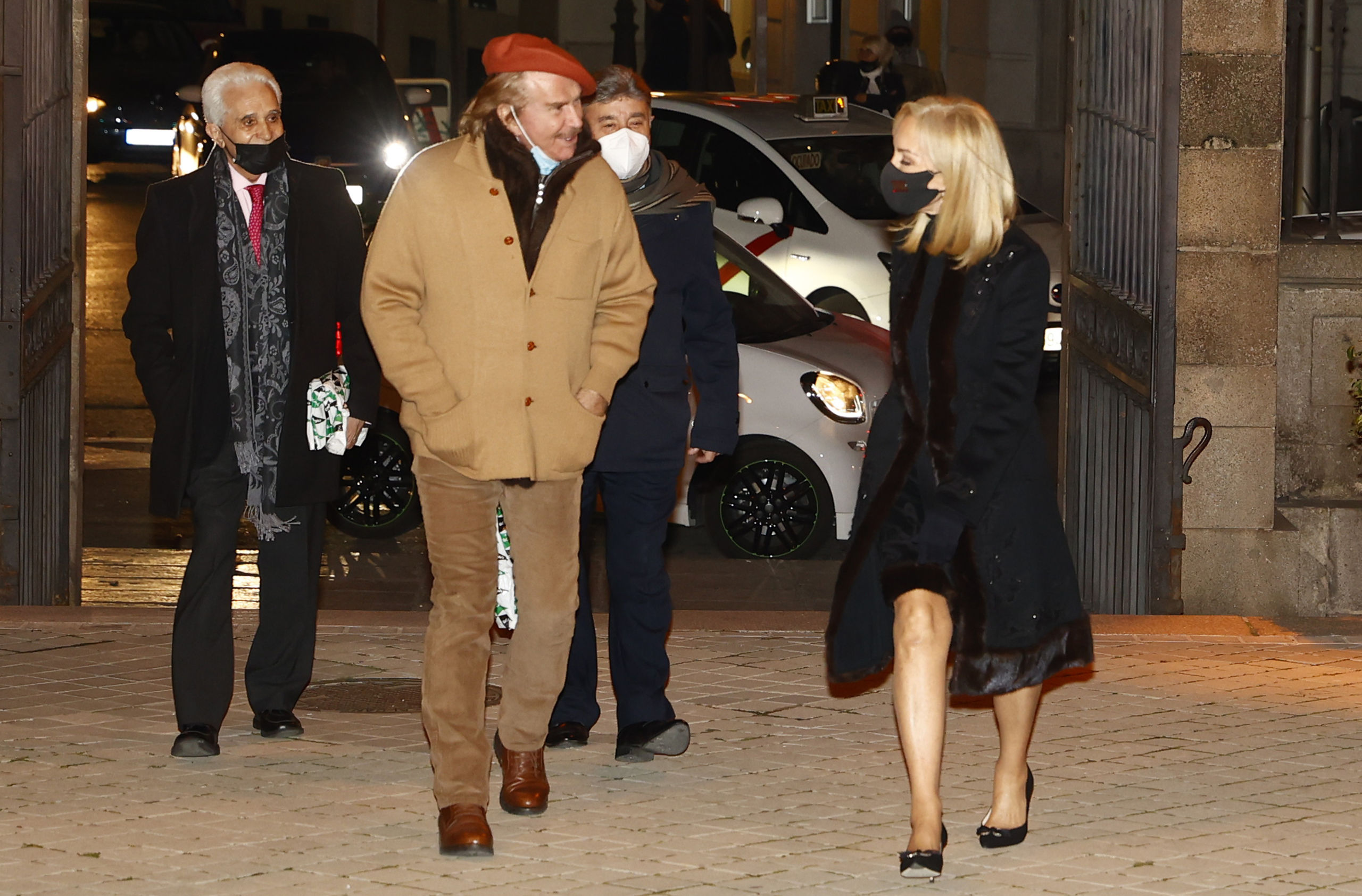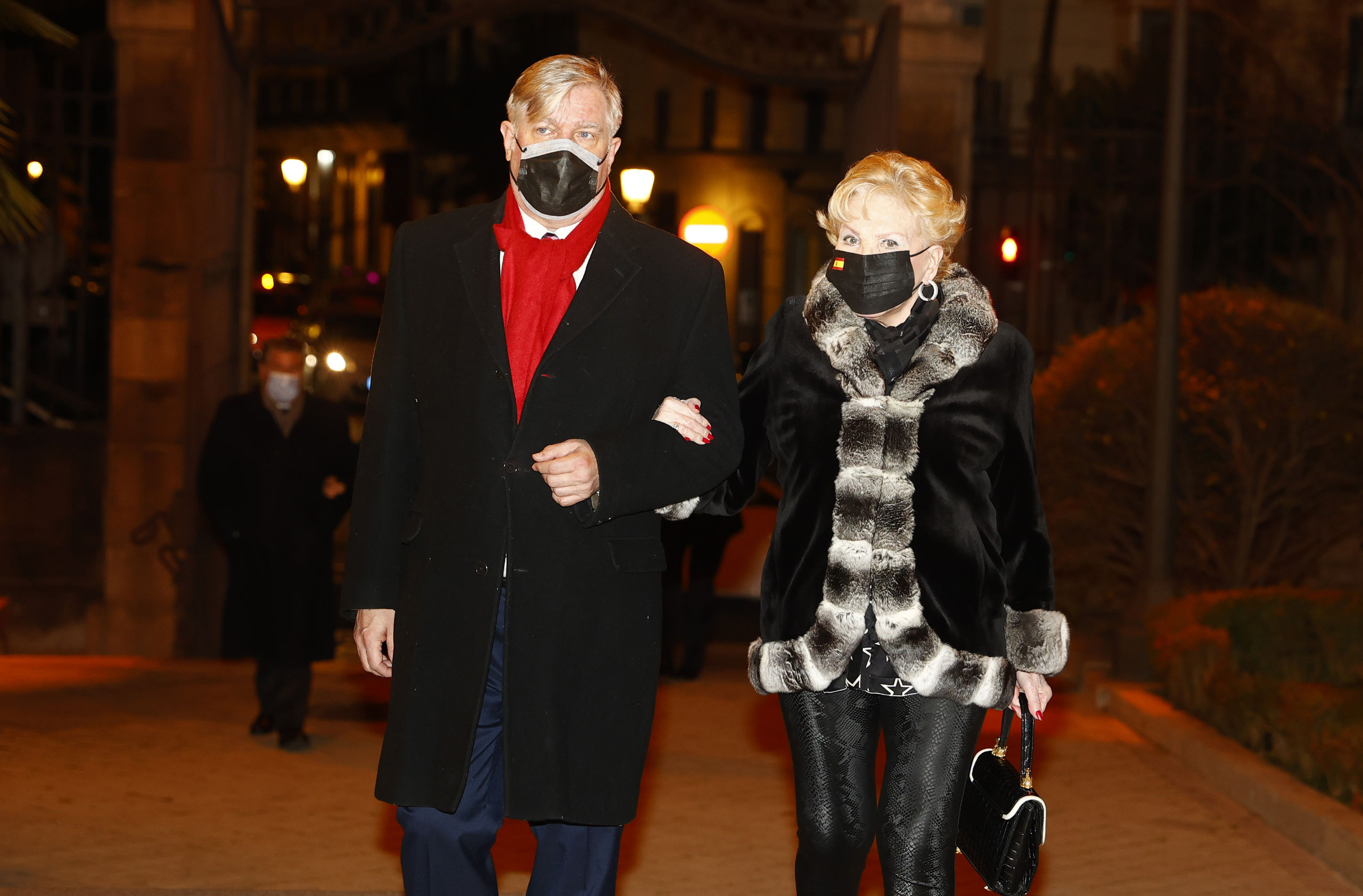 Bigote Arrocet y Carmen Lomana charlando antes de entrar a la basílica.