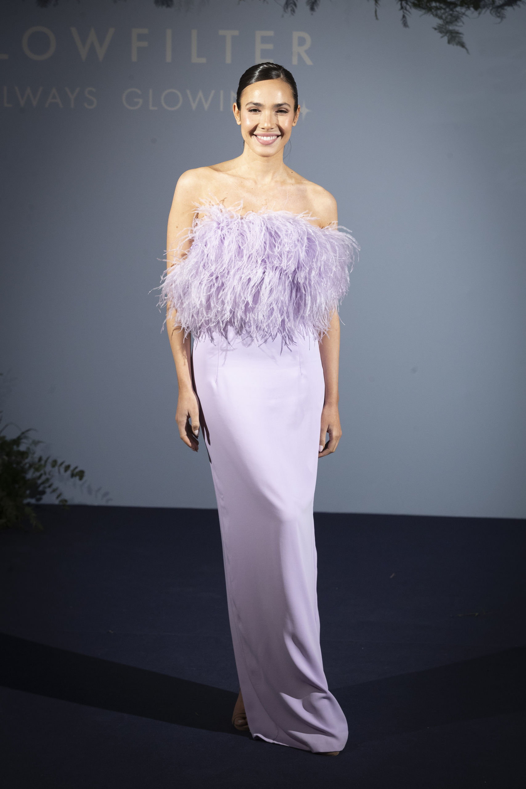 La influencer Paula Ordovás con un dulce conjunto 'cisne' formado por top y falda de plumas de avestruz de Jorge Acuña.