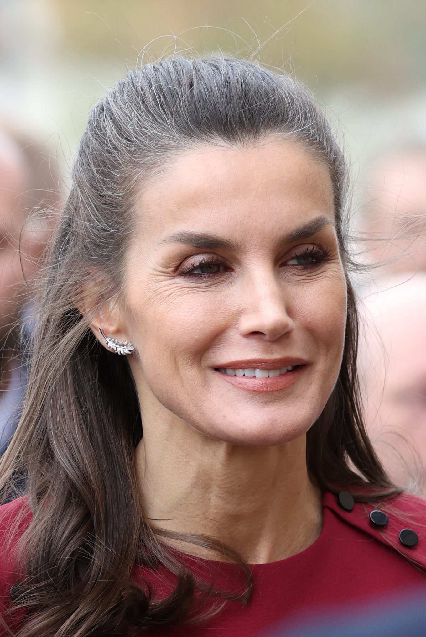 Doña Letizia se hizo un semirecogido que dejaba a la vista unos llamativos pendientes modelo Plumme de Chanel, realizados en oro blanco y diamantes.
