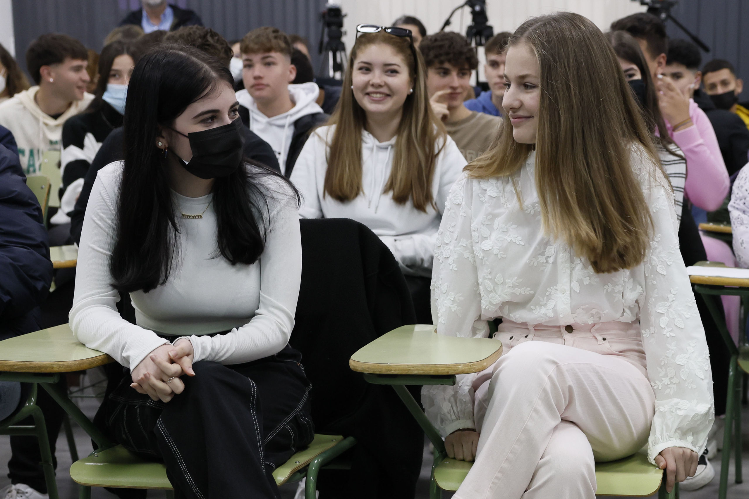 En el primer día en el que la mascarilla ya no es obligatoria en interiores, Leonor de Borbón ha estado con el rostro descubierto durante todo el tiempo en el que ha estado en el instituto de Educación Secundaria “Julio Verne”, escenario de la jornada titulada “Disfruta de internet con seguridad”, enfocada a enseñar a los estudiantes y profesores cómo moverse en la redes sociales de manera responsable.
