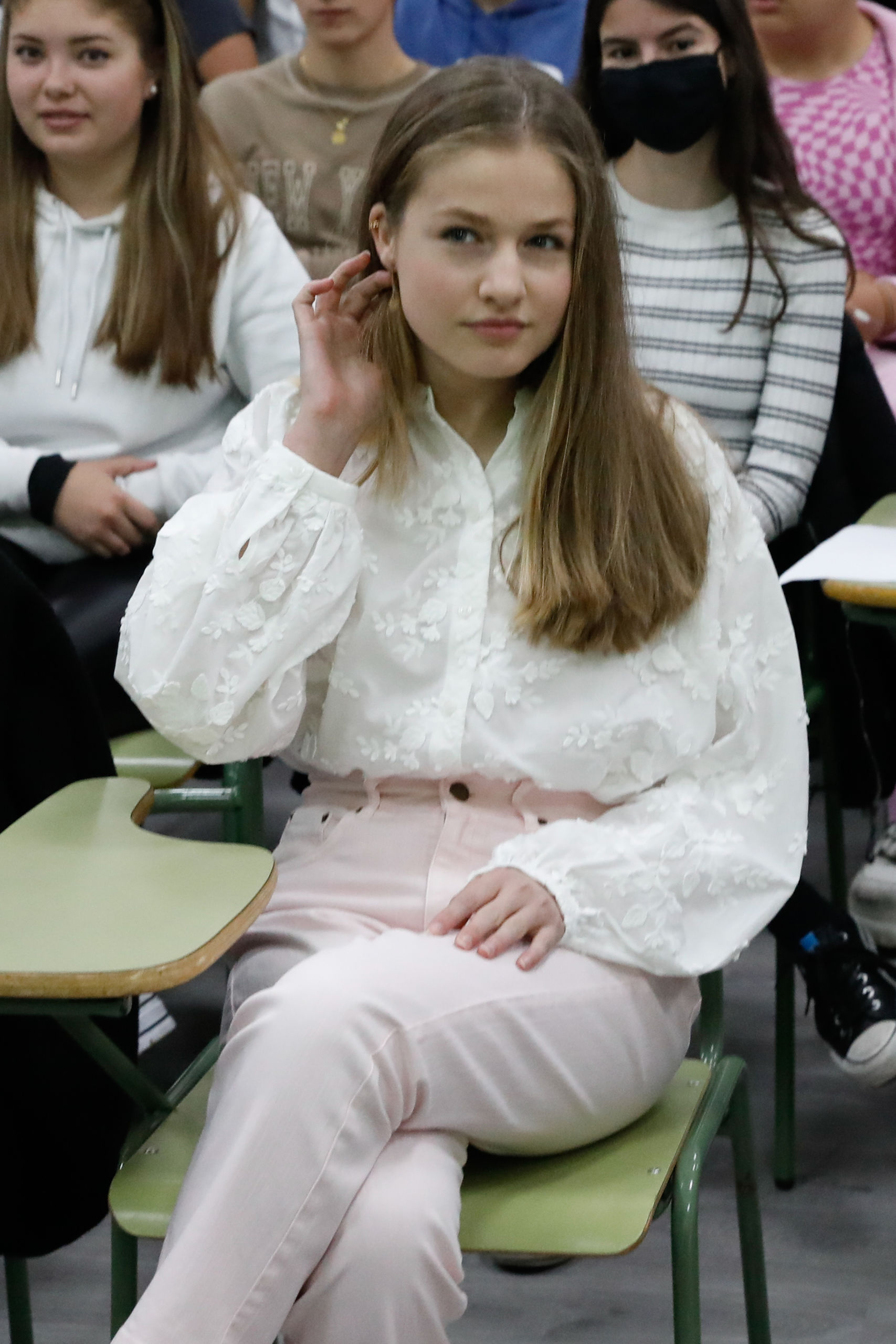 La princesa Leonor ha asistido este miércoles a una jornada sobre el uso seguro de internet y del teléfono móvil en los más jóvenes que ha tenido lugar en un instituto de la localidad madrileña de Leganés, donde ha estado acompañada de escolares que han participado en la iniciativa.