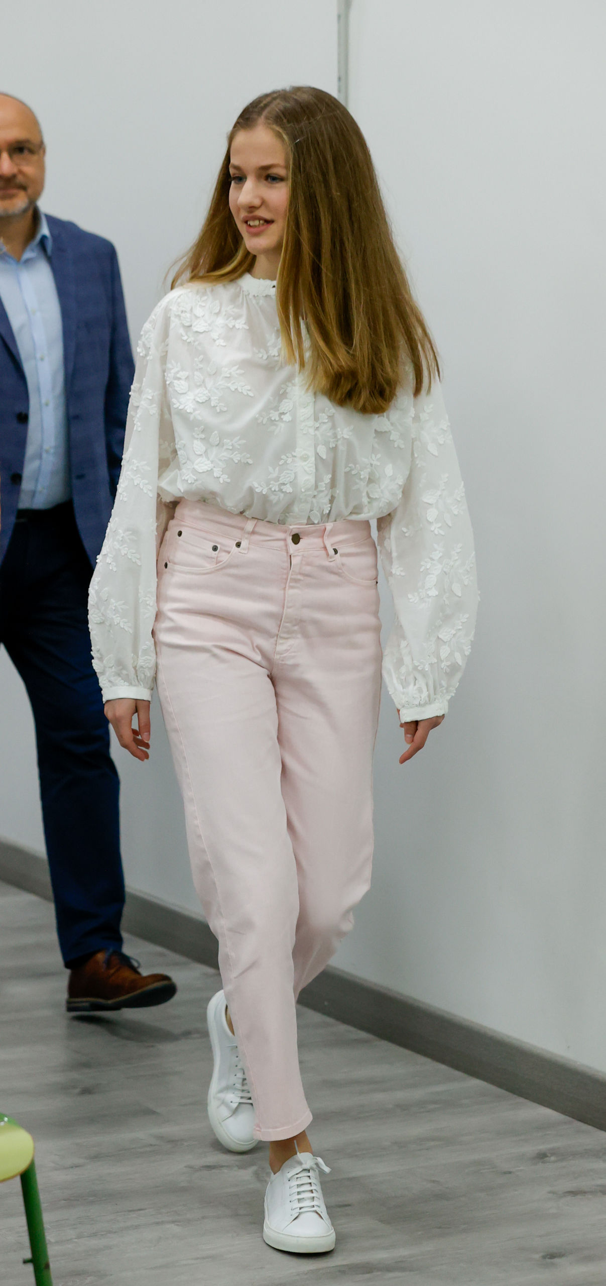 La heredera al trono, que ha vestido pantalón rosa, blusa blanca y deportivas, se ha sentado en la primera fila de la sala flanqueada por algunas estudiantes para escuchar a los expertos sobre la importancia de que los jóvenes hagan un uso responsable de las tecnologías, en especial, del teléfono móvil.