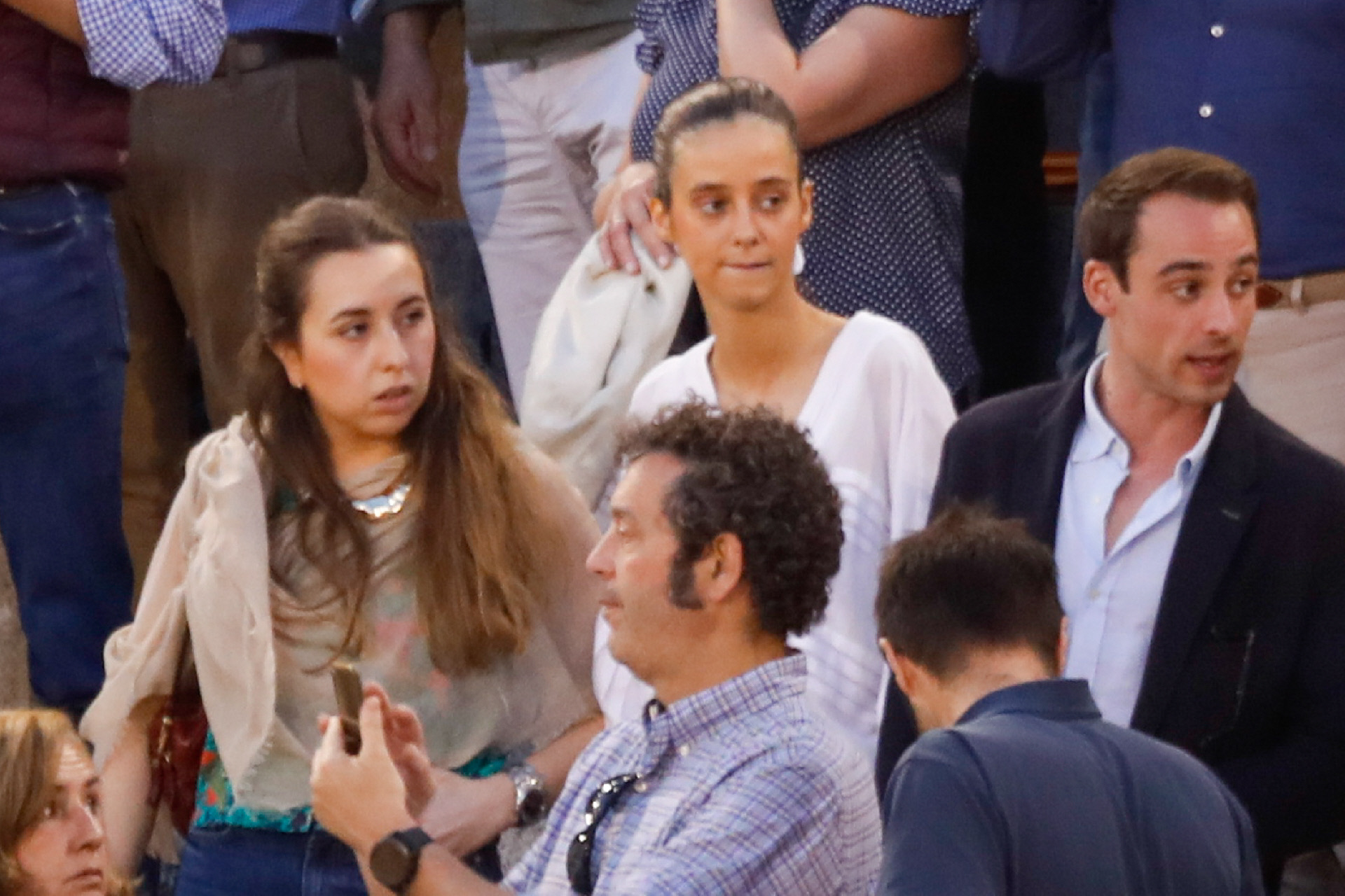 Acompañada por una amiga y un amigo con el que se mostró de lo más cómplice, la sobrina de Felipe VI ha dejado en el aire qué hay de cierto en que su relación con Bárcenas estaría en la cuerda floja desde hace semanas. Hablando por teléfono para esquivar nuestras preguntas, Victoria prefería no desvelar si es cierto que ha roto con el Dj, y con un "¿te importa? O sea..." entraba en Las Ventas sin decir ni palabra sobre su estado sentimental.