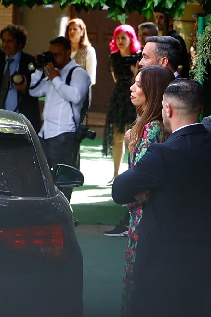 Alejandra Rubio ha asistido acompañada de su novio, Carlos Agüera, que lucía un traje en blanco roto.
