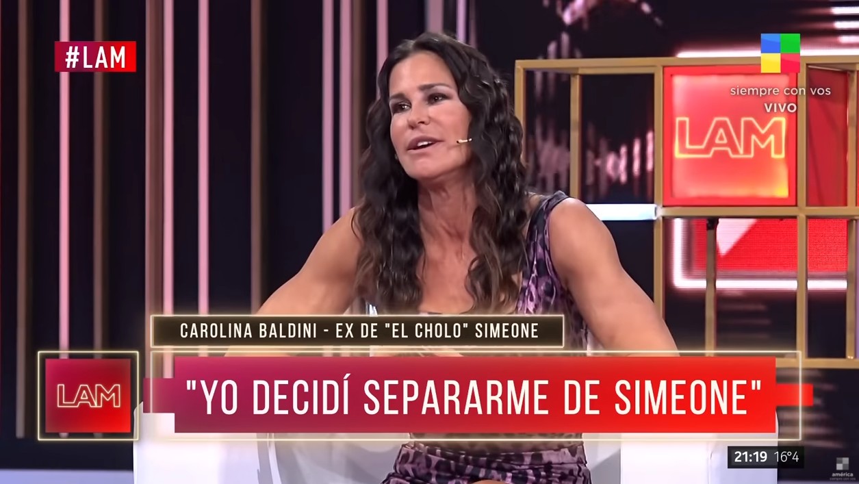 Carolina Baldini, exmujer de Diego Pablo Simeone y madre de sus tres hijos varones, reapareció el pasado fin de semana en el programa LAM de la televisión argentina tras una larga temporada alejada del foco mediático. El entrenador del Atlético de Madrid trata de mantenerse al margen de polémicas, sobre todo de aquellas que tienen que ver con su vida privada, pero la entrevista de su exmujer ha generado un gran malestar en su familia.