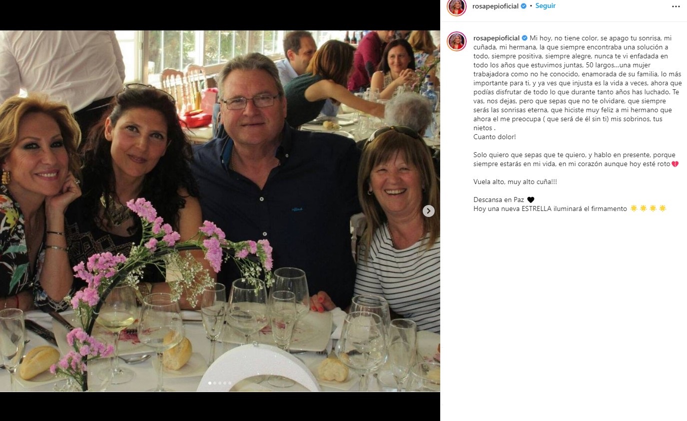 Unos minutos después era Rosa Benito la que se despedía de su "adorada" cuñada: "Se apagó tu sonrisa, mi cuñada, mi hermana (...) Siempre positiva, siempre alegre, nunca te vi enfadada en todos los años que estuvimos juntas, 50 largos…", un bonito homenaje que ha acompañado de varias fotografías de su vida juntas.