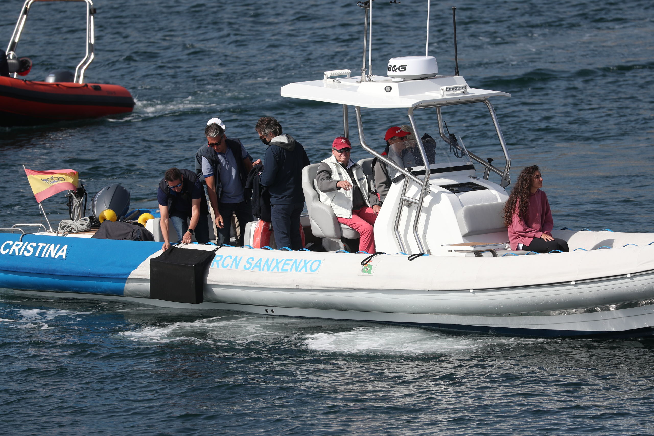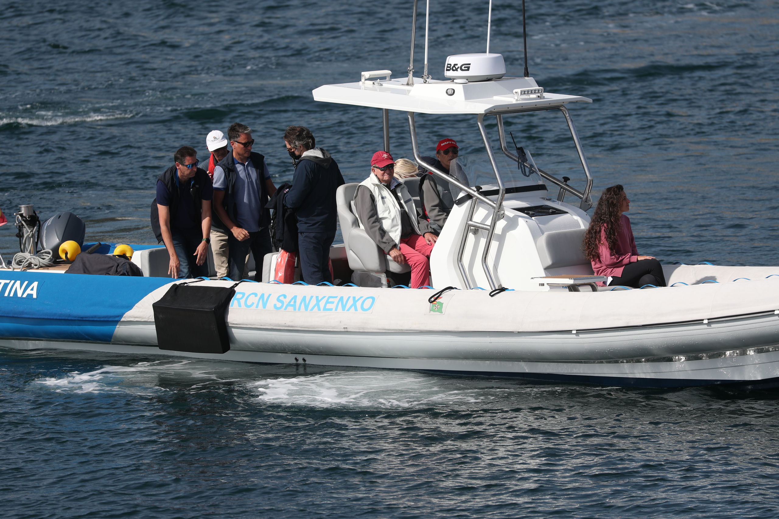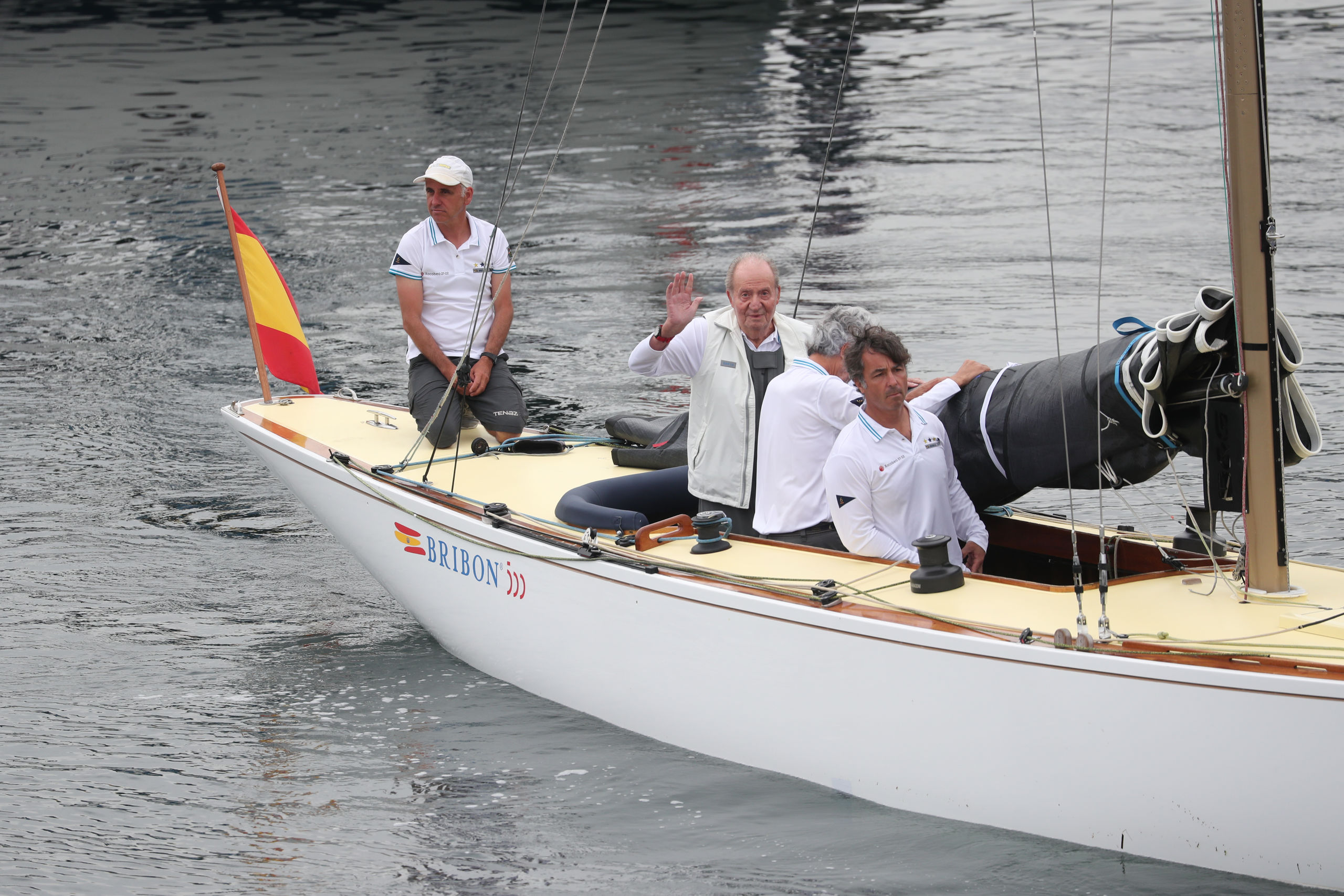 En el club ha vuelto a saludar a la prensa congregada a las puertas, aunque hoy, en lugar de pararse ha ido directo hacia el muelle donde estaba atracado el Bribón. Porque hoy, con la mar más en calma y menos viento, el emérito quería ver cumplido su deseo de patronear su barco.