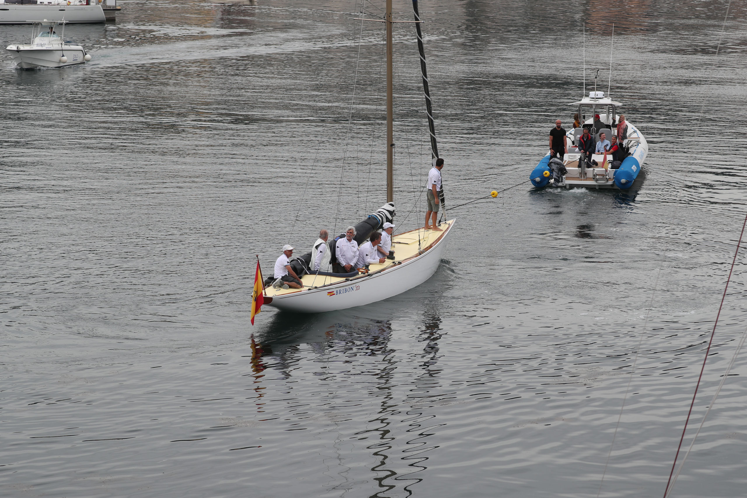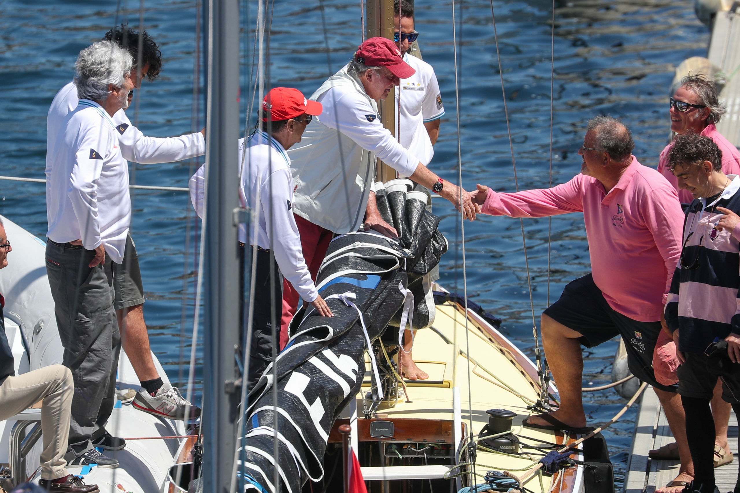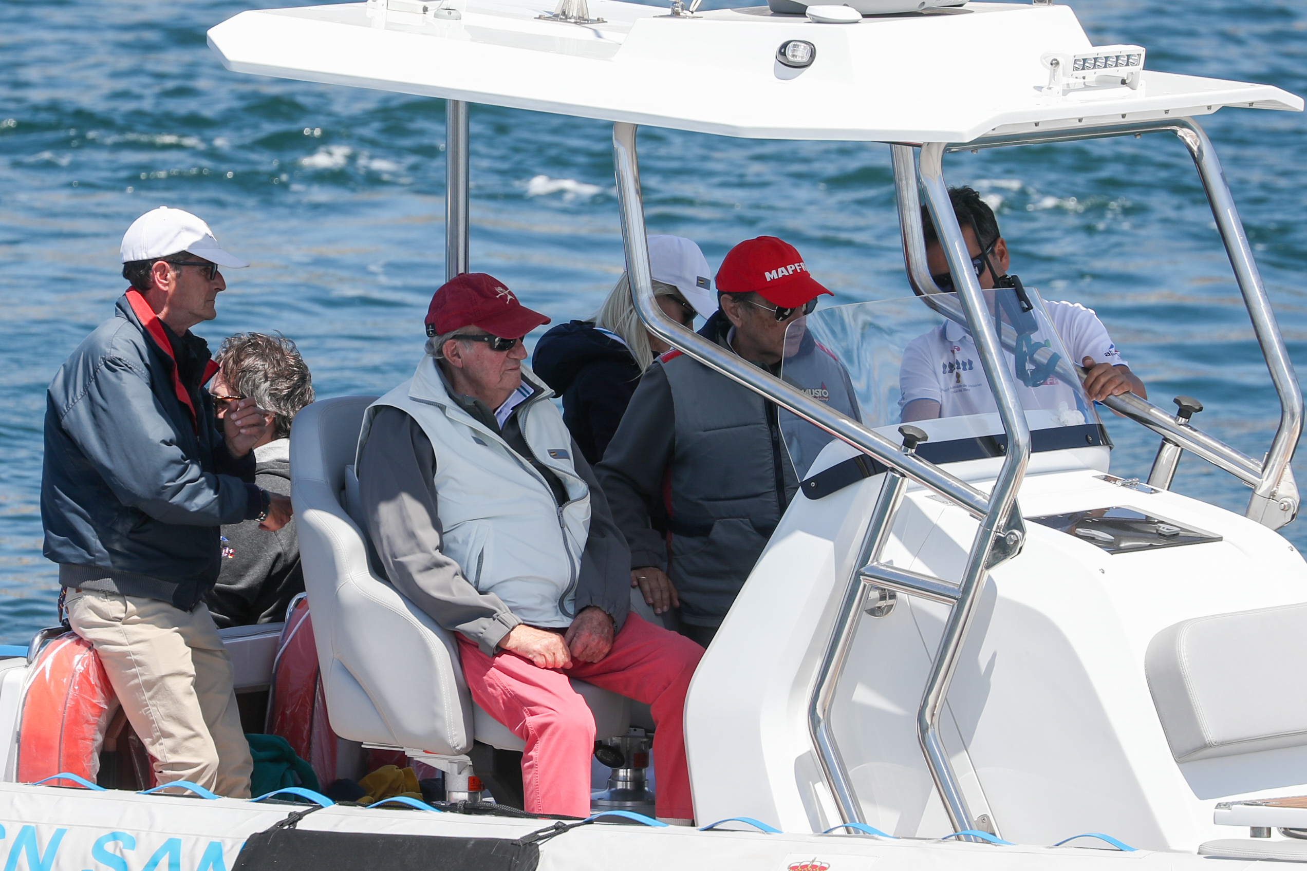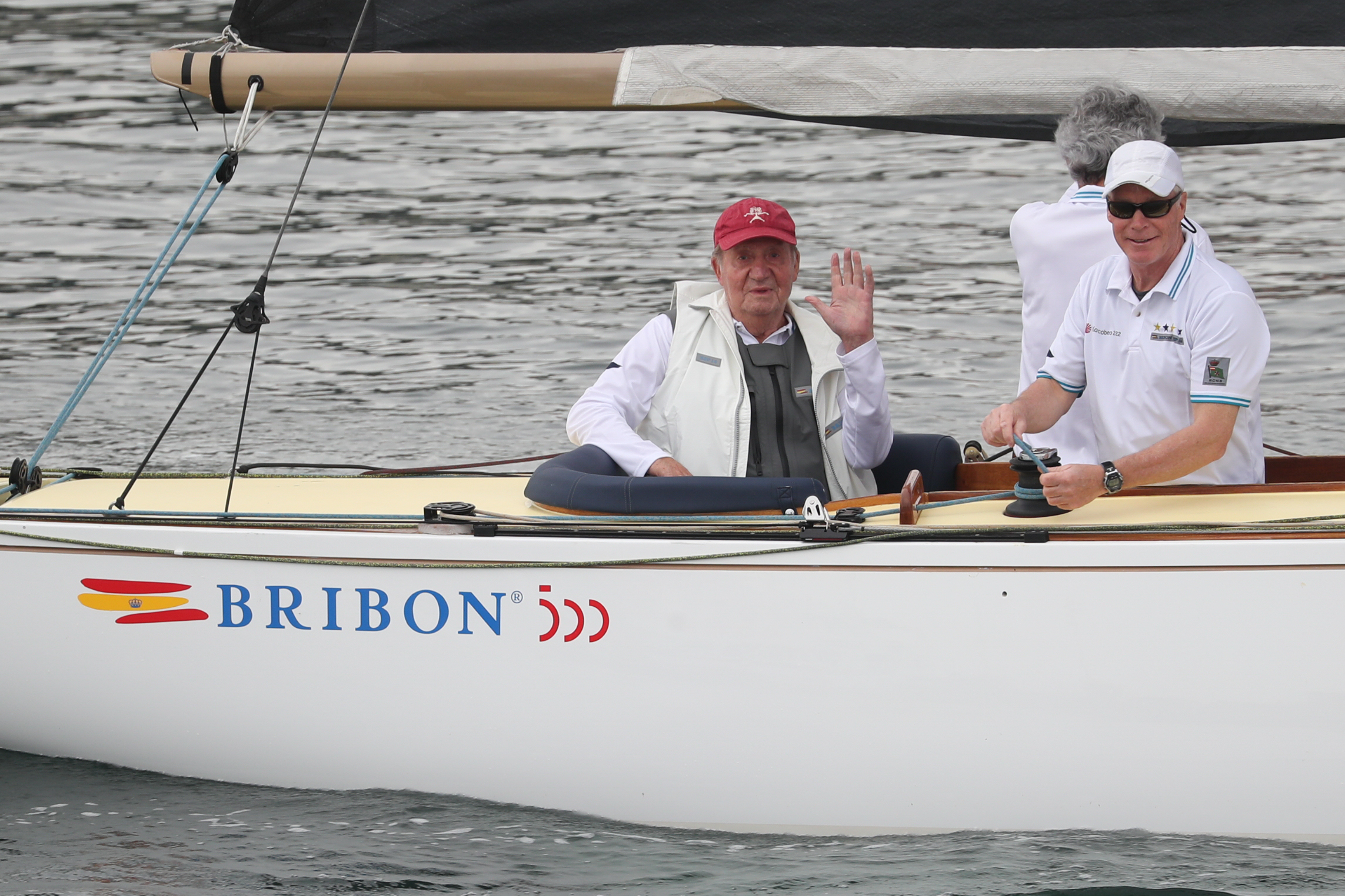 En el club ha vuelto a saludar a la prensa congregada a las puertas, aunque hoy, en lugar de pararse ha ido directo hacia el muelle donde estaba atracado el Bribón. Porque hoy, con la mar más en calma y menos viento, el emérito quería ver cumplido su deseo de patronear su barco.
