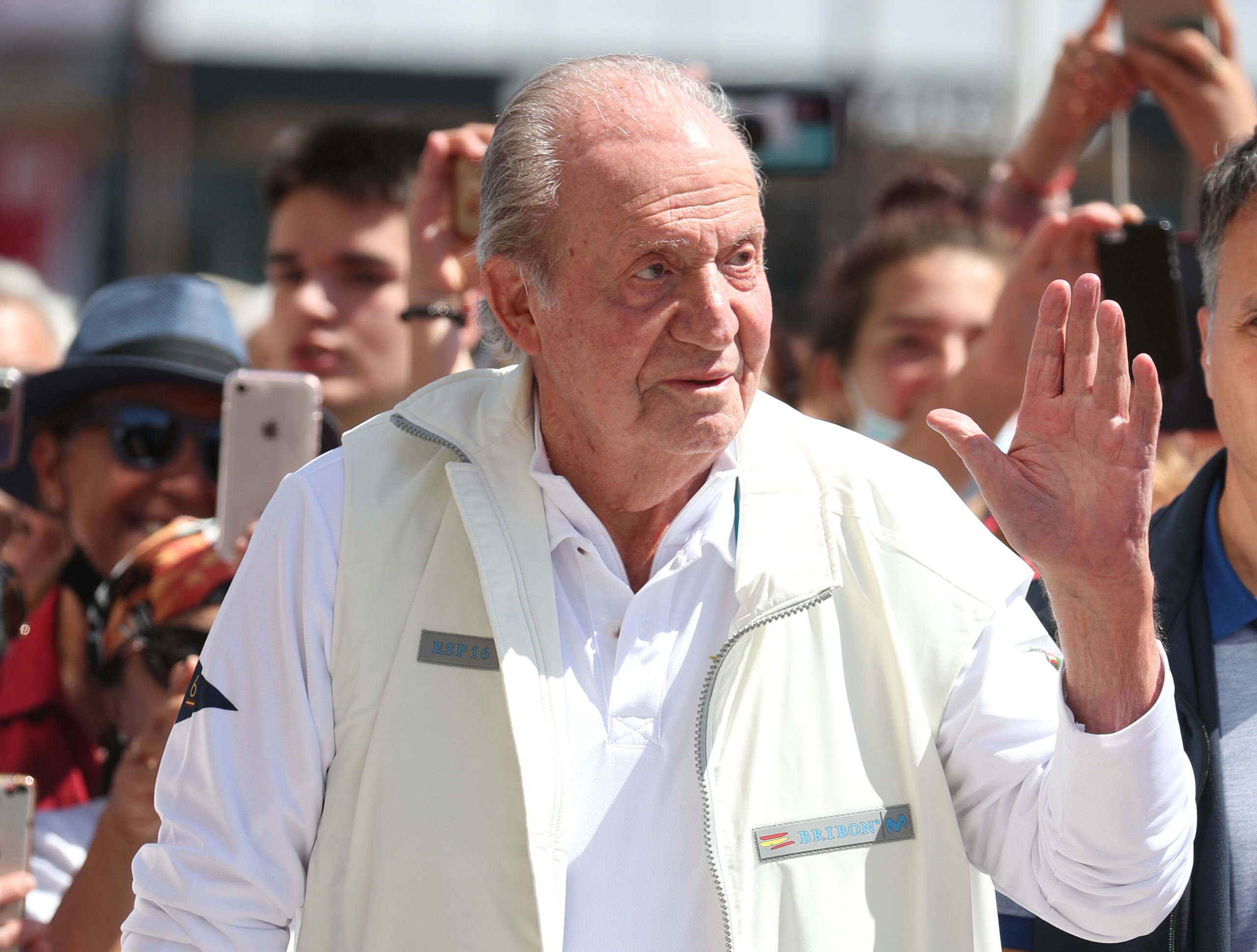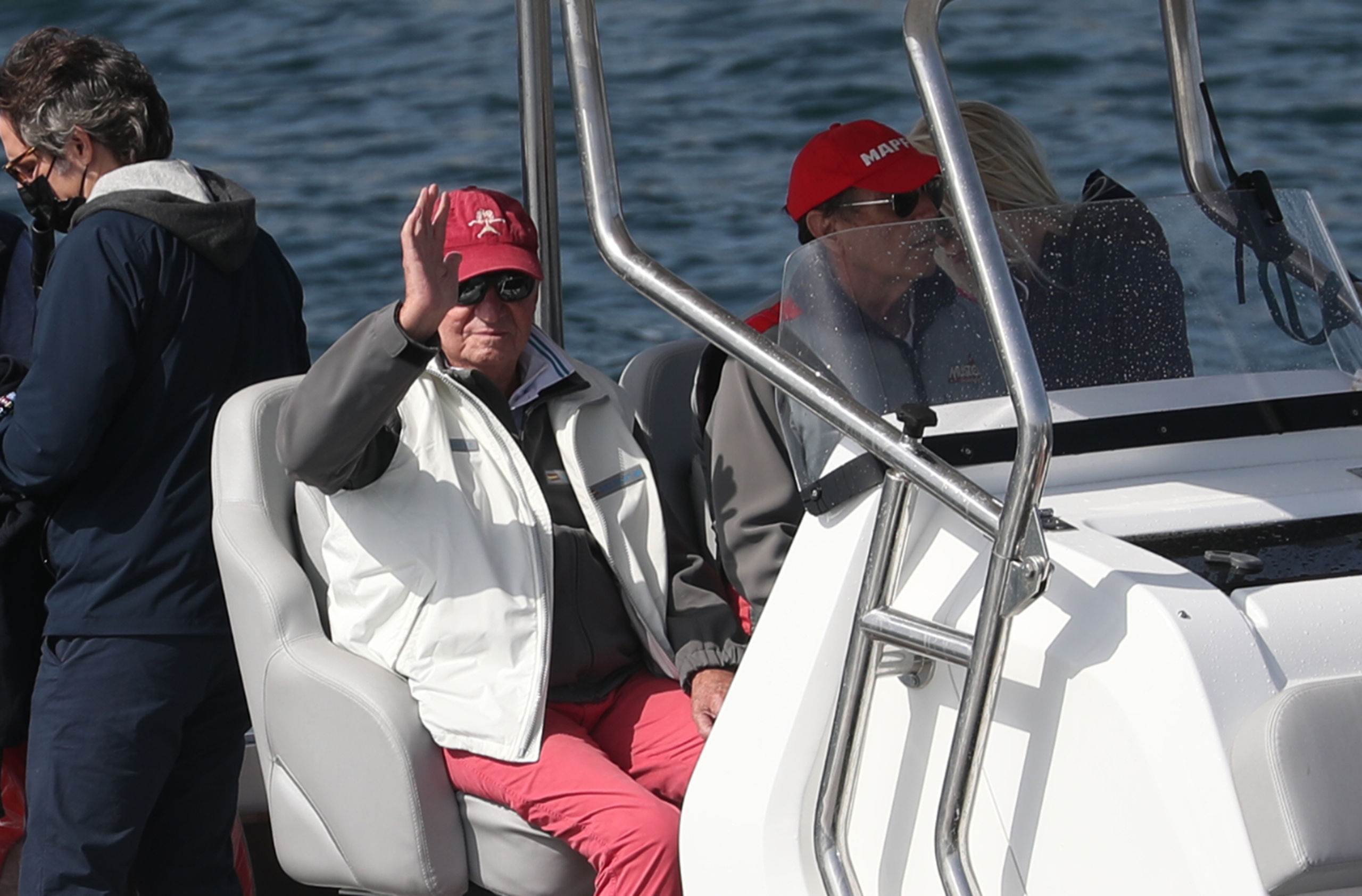 El rey emérito Juan Carlos I ha regresado a tierra a las seis de la tarde, tras cuatro horas de navegación, y a su llegada, en el pantalán, al pasar a la altura de los periodistas, muy sonriente y con la ventanilla del coche bajada, les ha dicho "muchas gracias, muchas gracias".