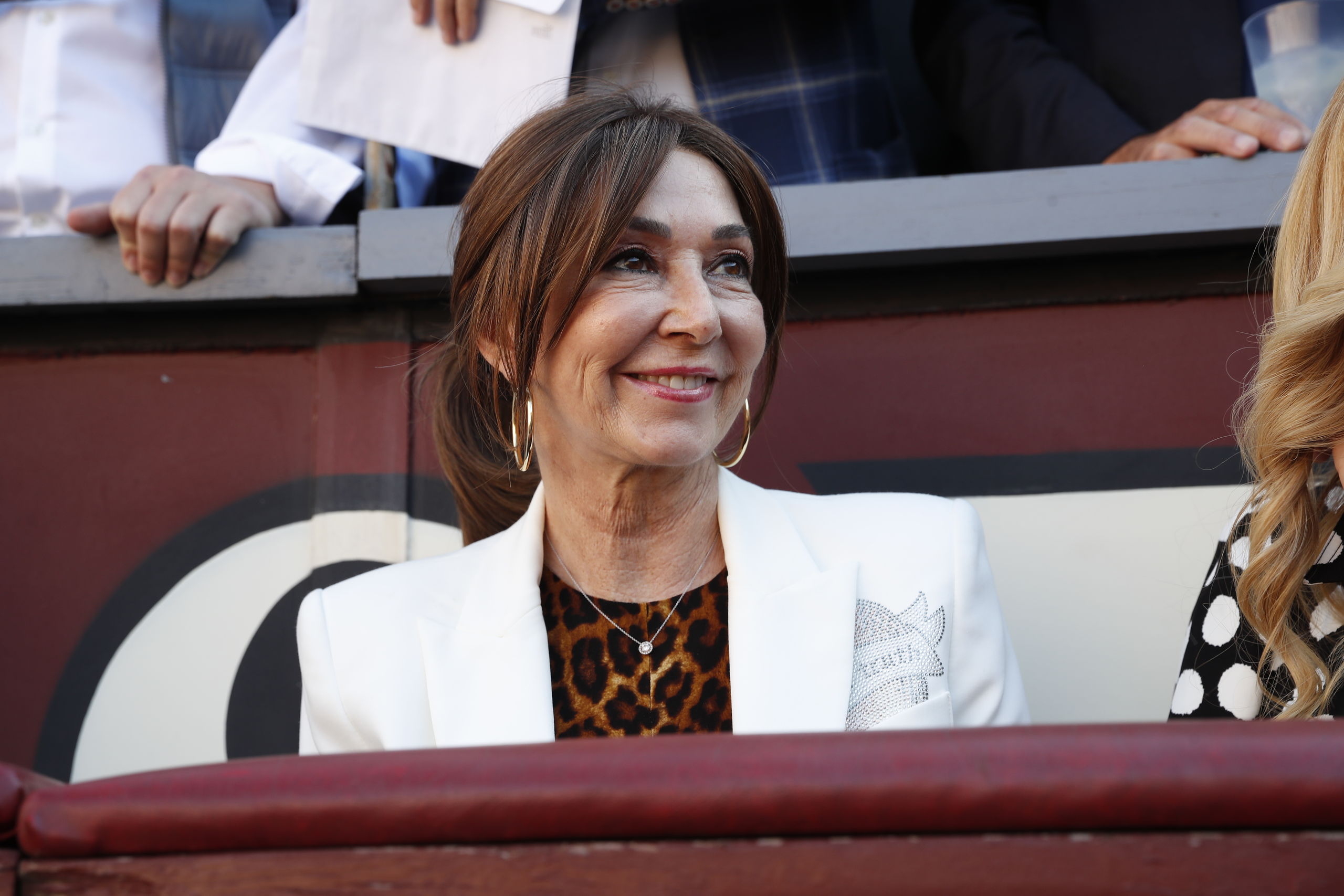 Más delgada, Ana Rosa ha acaparado todas las miradas con un mono de leopardo de lo más moderno y una blazer blanca con detalles metalizados. Con gafas de sol, una favorecedora coleta y la mejor de sus sonrisas, la periodista llegaba a la plaza acompañada por su gran apoyo, Juan Muñoz, y recibiendo el cariño del público, que ella agradeció de lo más cercana.