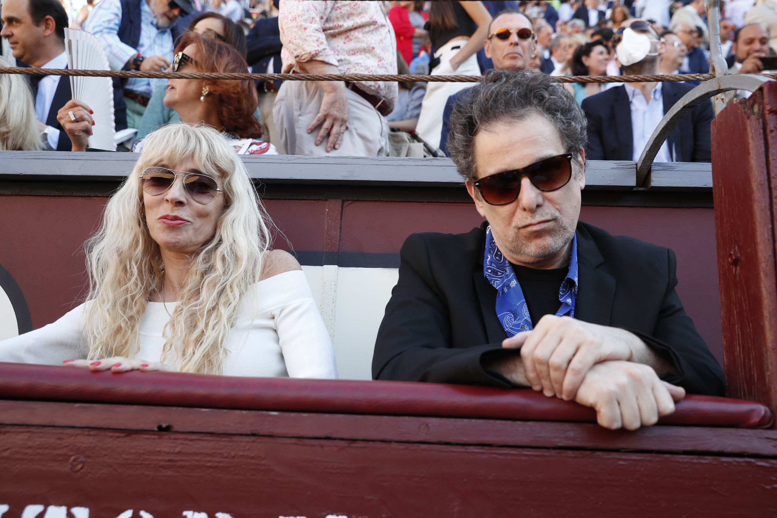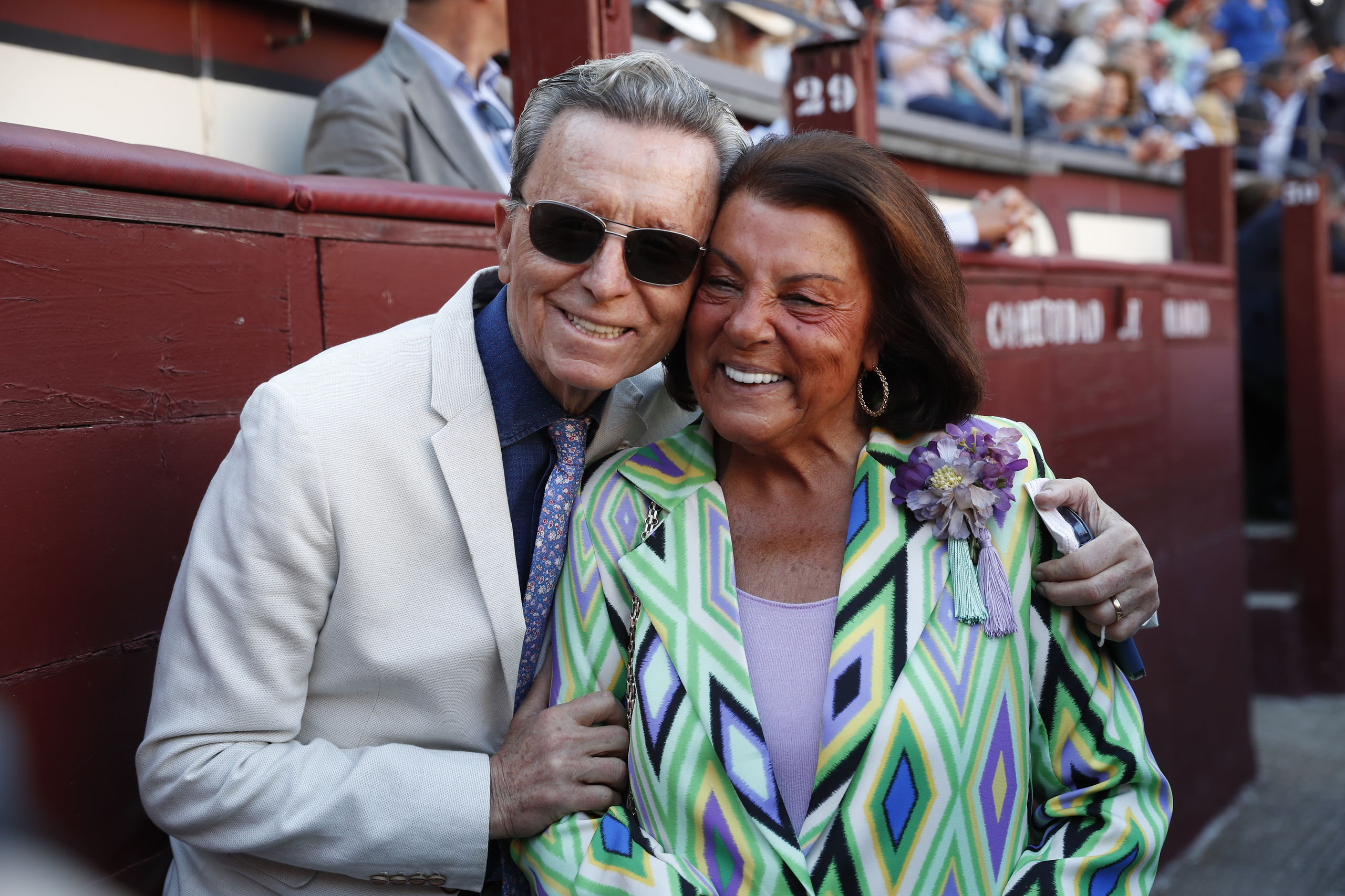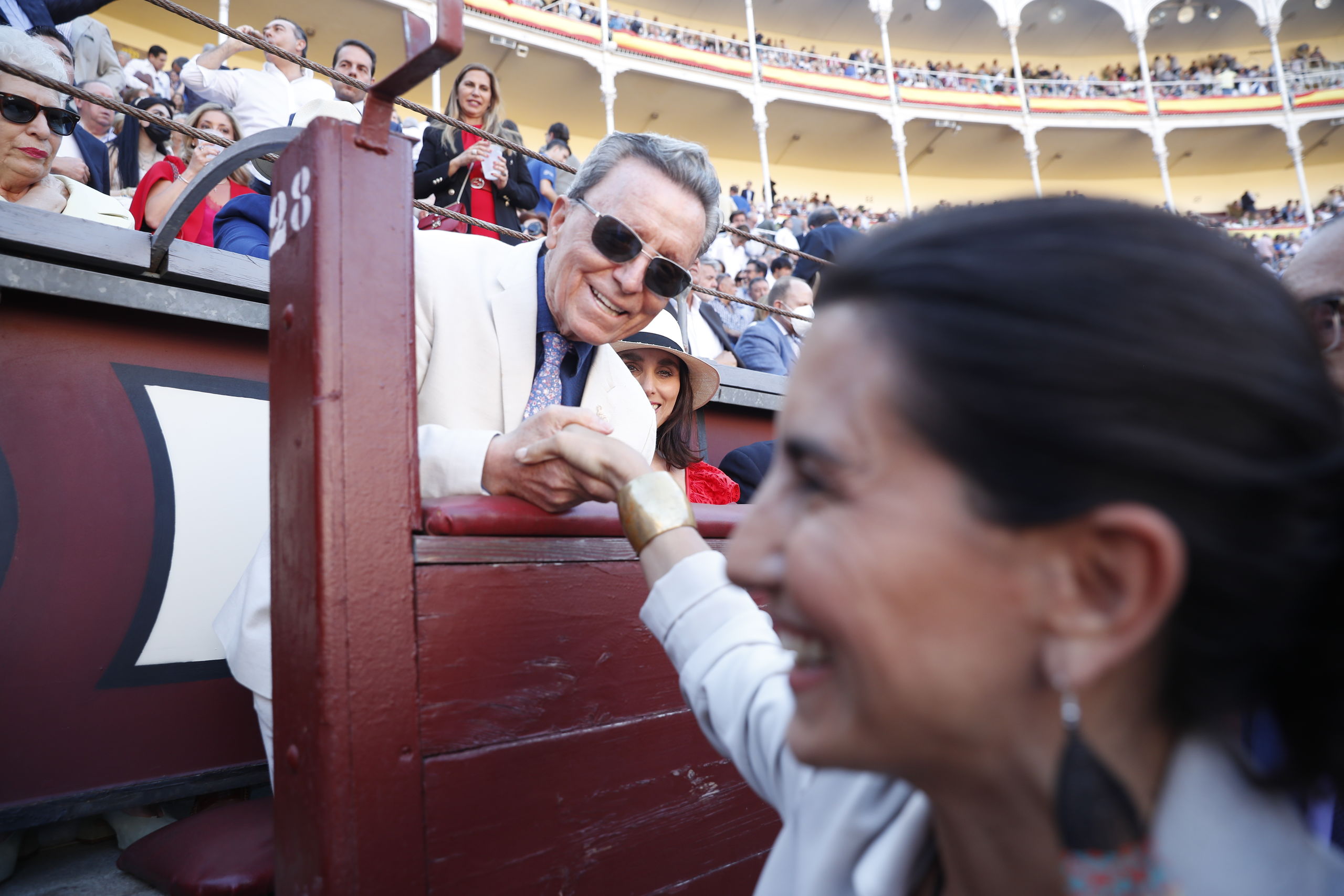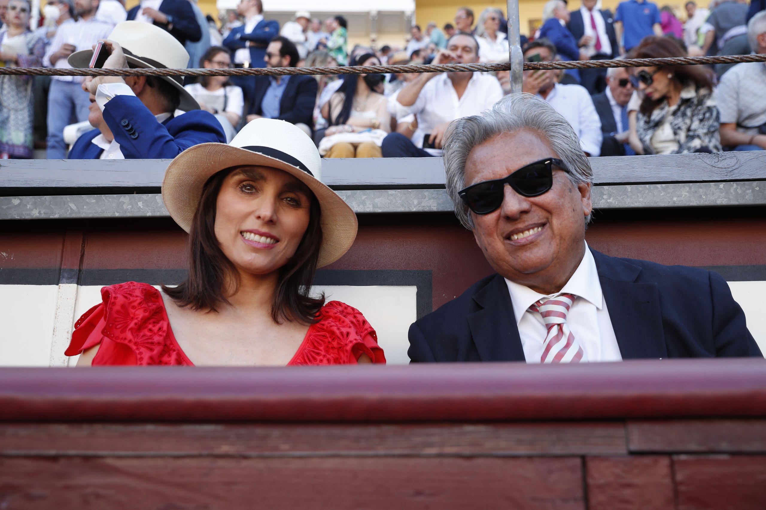 Rocío Monasterio y José Ortega Cano se saludaron efusivamente antes del comienzo de la corrida.