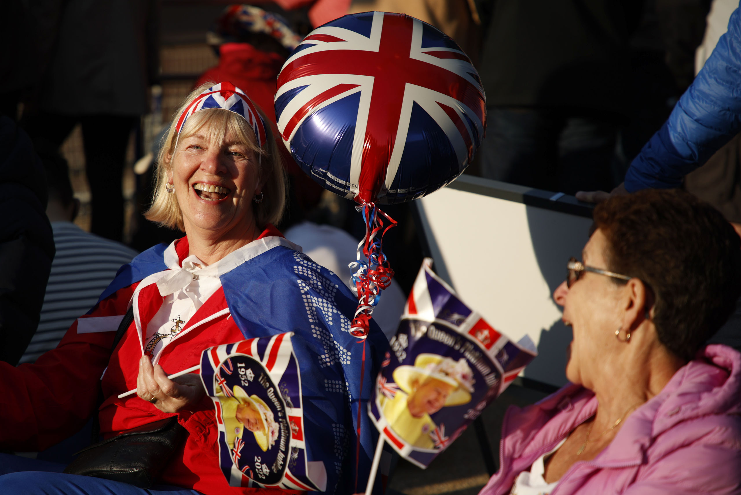 Cientos de personas ataviadas con las "Union Jack" (bandera británica) en diferentes formatos -gorros, gafas, camisetas, botas, tatuajes, banderas- aguardan este jueves en las calles de Londres el arranque de los festejos previstos por los 70 años en el trono de la reina Isabel II.