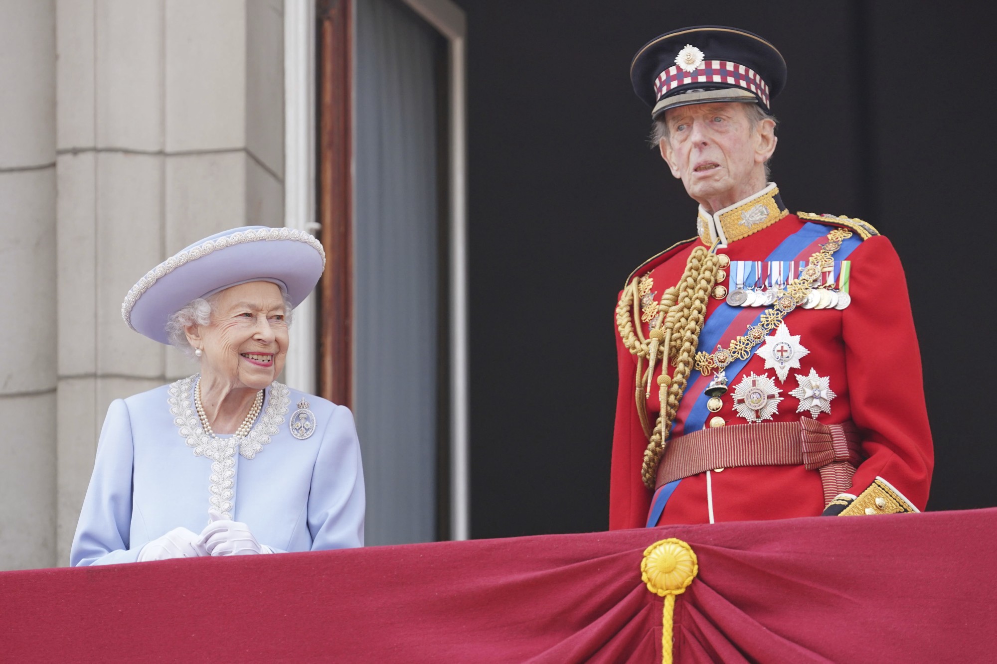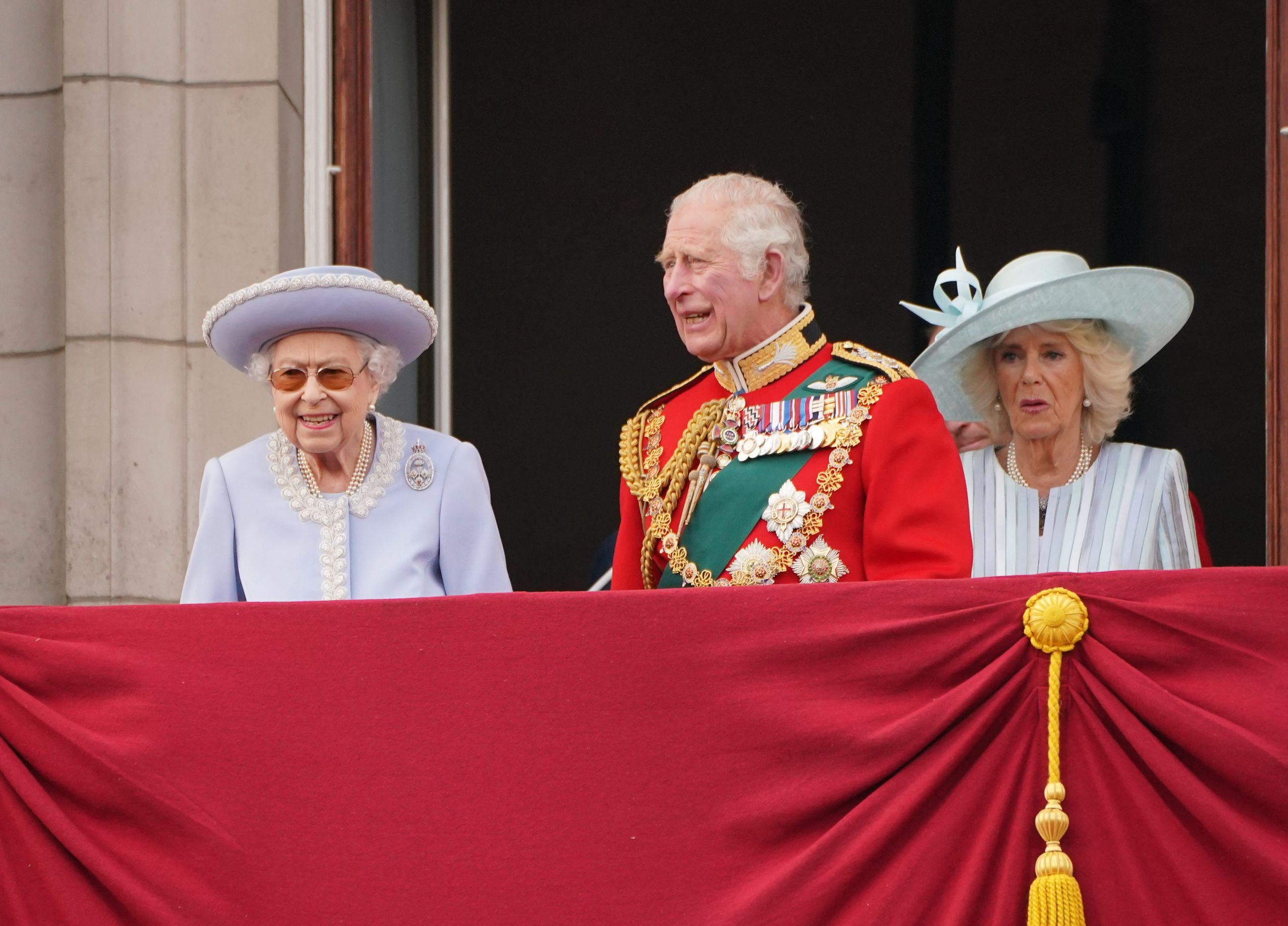 La familia real británica salió al balcón del Palacio de Buckingham al término del desfile militar conocido como "Trooping the Colour", que marca el cumpleaños oficial de la soberana y, en esta ocasión, el comienzo de cuatro días consecutivos de celebraciones por el Jubileo de Platino. Con vestido azul celeste de la diseñadora Angela Kelly, pamela a juego y bastón en mano, la soberana, de 96 años, saludó a la multitud congregada frente a la residencia real y en la gran avenida "The Mall", que ha sido decorada con grandes banderas del Reino Unido.