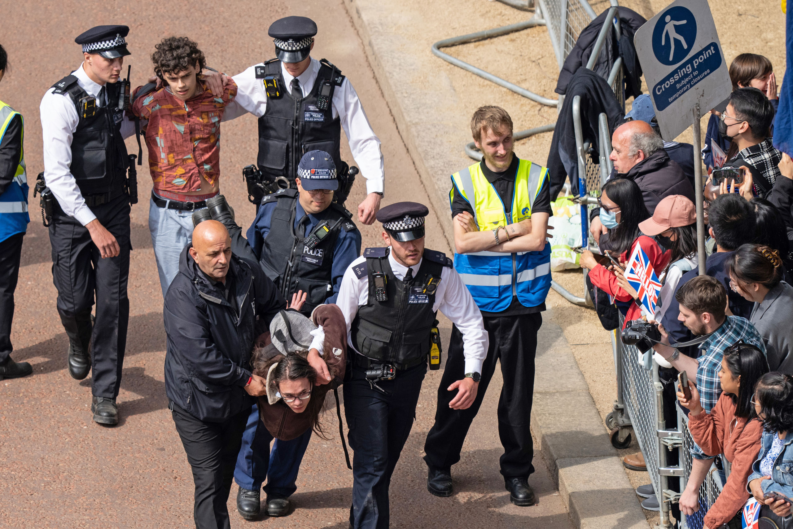 Paralelamente, la Policía Metropolitana de Londres informó en Twitter de que los agentes tuvieron que efectuar varias detenciones a un grupo de personas que intentó introducirse en la ruta ceremonial justo antes de que arrancara el desfile. Scotland Yard, que no divulgó detalles específicos de los arrestos, señaló en su mensaje que las detenciones estuvieron relacionadas con incidentes de "desorden público" por obstrucción a la vía pública.