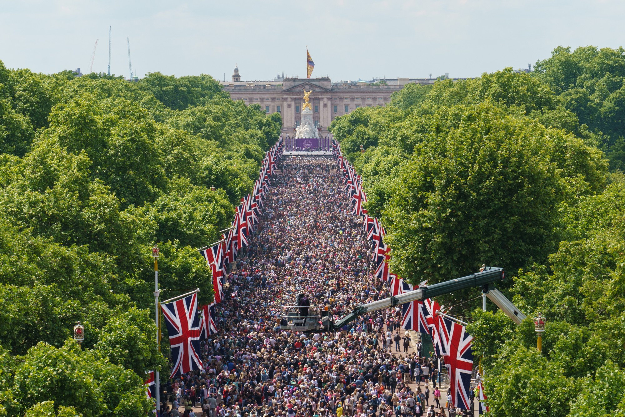 La céntrica avenida londinense The Mall congrega a ciudadanos de todas las nacionalidades, que consideran importante, según cuentan a los medios de comunicación, honrar el legado de su monarca. Un reciente sondeo de opinión divulgado por la firma YouGove con motivo del Jubileo apuntan a que un 62 % de ciudadanos respaldan a la monarquía, un 22 % se muestra a favor de un jefe de Estado electo, mientras que un 16 % "no sabe".