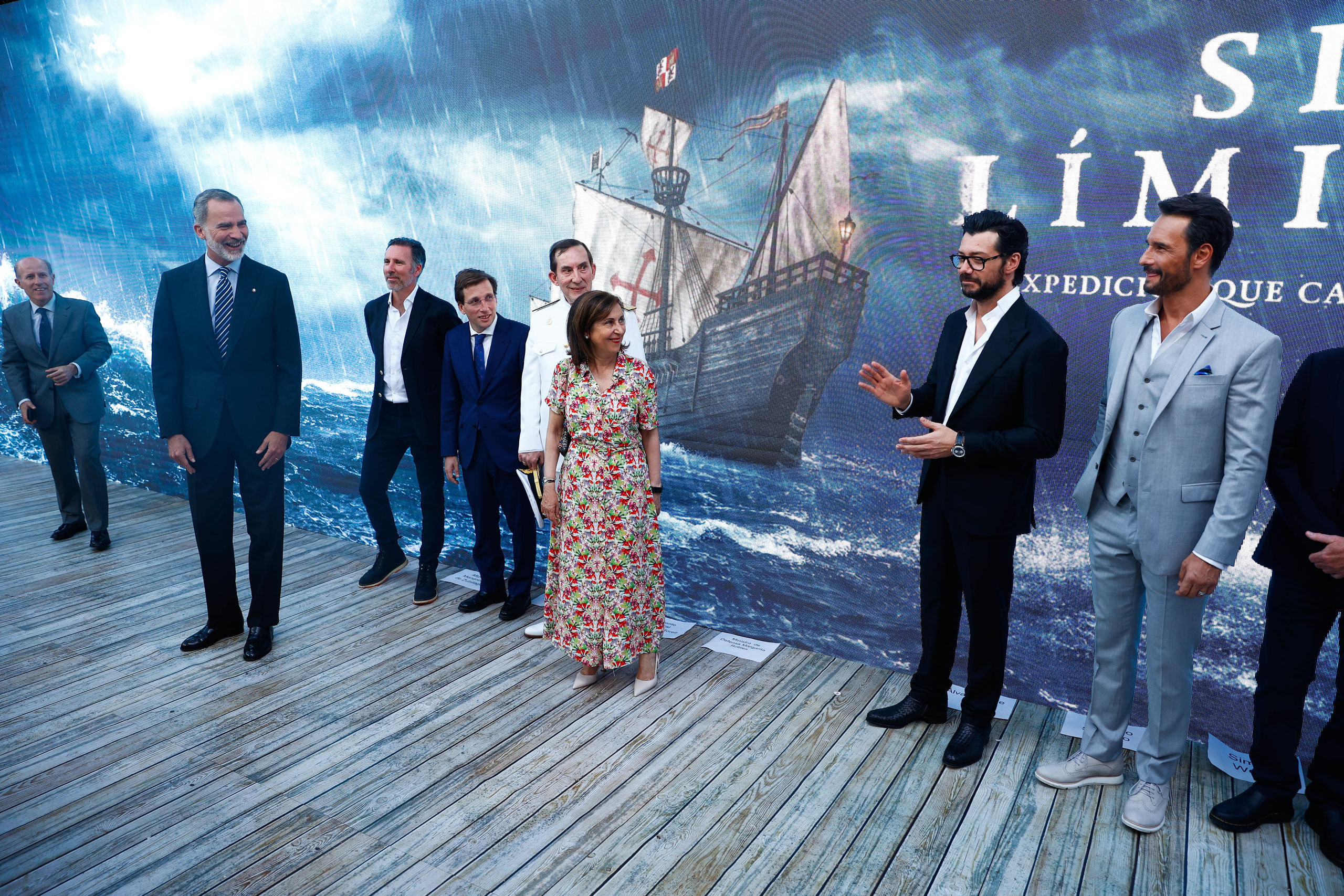 También han acudido el alcalde de Madrid, José Luis Martínez Almeida; la ministra de Defensa, Margarita Robles Fernández; el almirante jefe del Estado Mayor de la Armada, Antonio Martorell y el responsable de Contenidos de Prime Video España, Ricardo Cambronero.