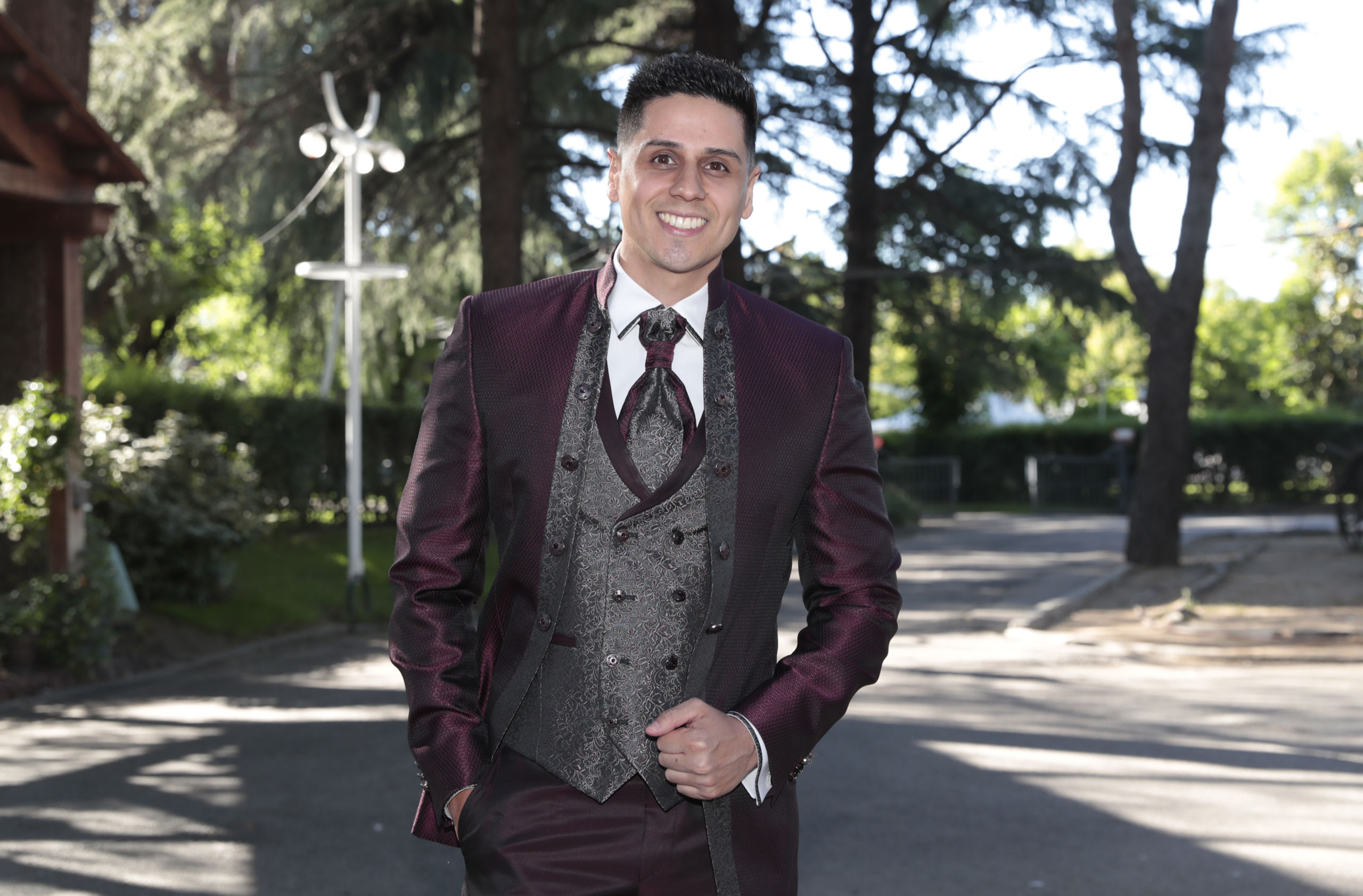 Christofer posa sonriente antes de entrar a la finca donde se celebró la ceremonia.