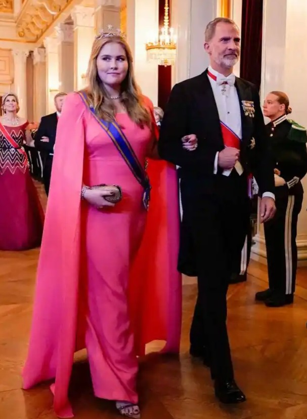 Amalia de Holanda del brazo de Felipe VI en la gran fiesta de Ingrid de Noruega.