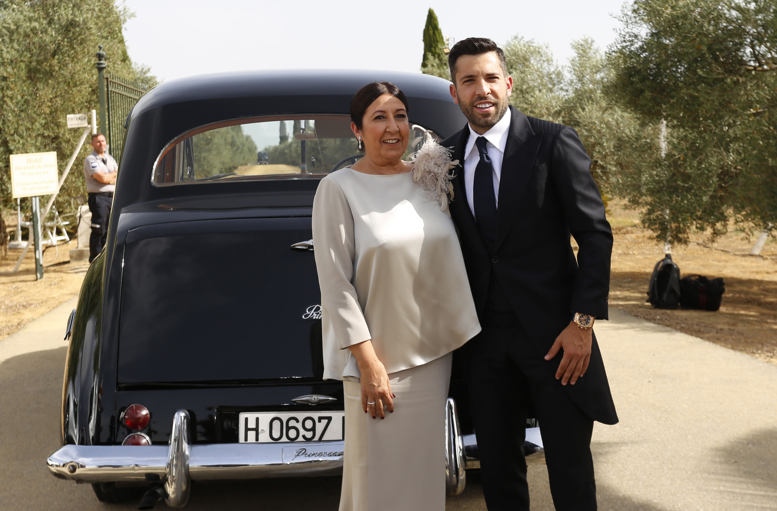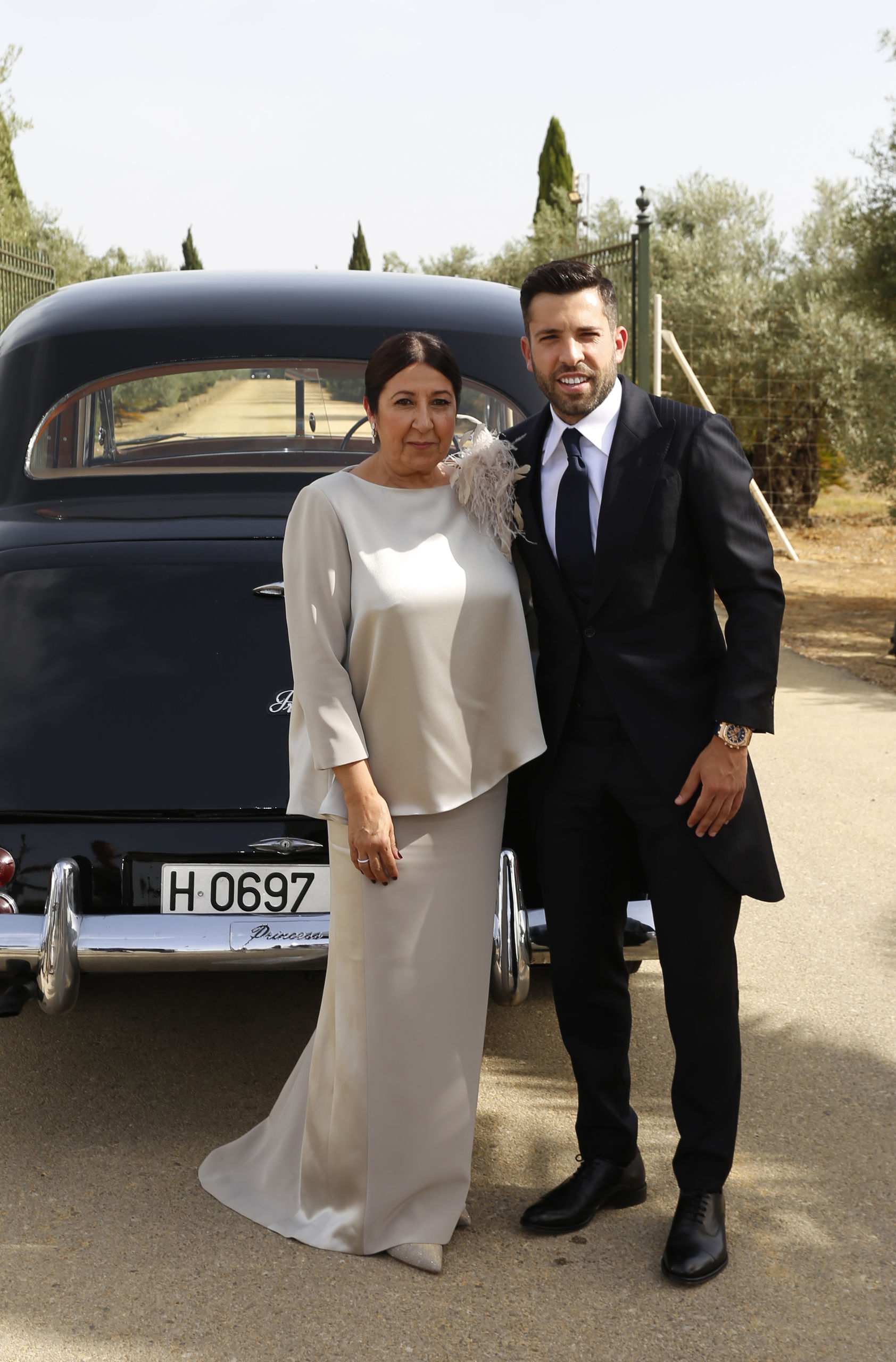 Jordi Alba vestido de novio acompañado por su madre, María José, la madrina del enlace.