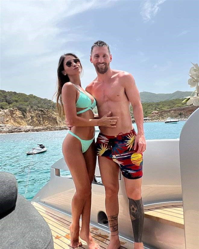 En las ibicencas se puede admirar el admirable estado de forma de ambos, no solo de Messi sino de su mujer, la argentina Antonela Roccuzzo, y sus tres hijos que les han acompañado.
