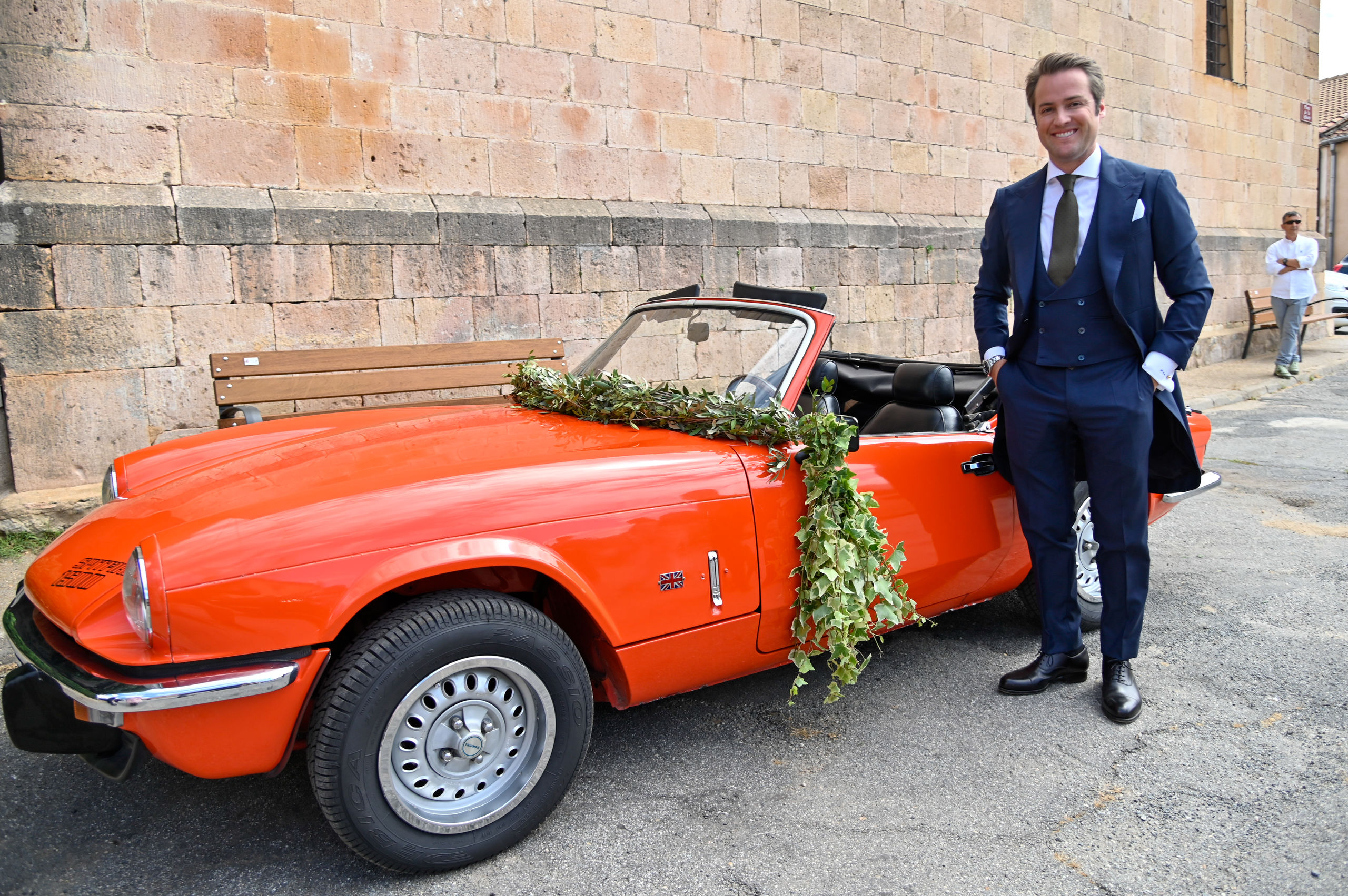 El novio Álvaro López Huerta era uno de los primeros en llegar a la iglesia a bordo de un magnífico descapotable clásico que conducía él mismo.