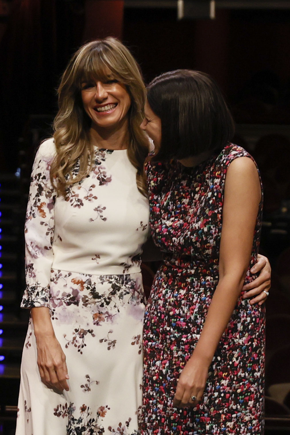 También acudió al Teatro Real Begoña Gómez, que no ha querido perderse ni una cita de la cumbre para ejercer de anfitriona junto a doña Letizia. En esta ocasión, lució un veraniego vestido blanco con estampado de flores.
