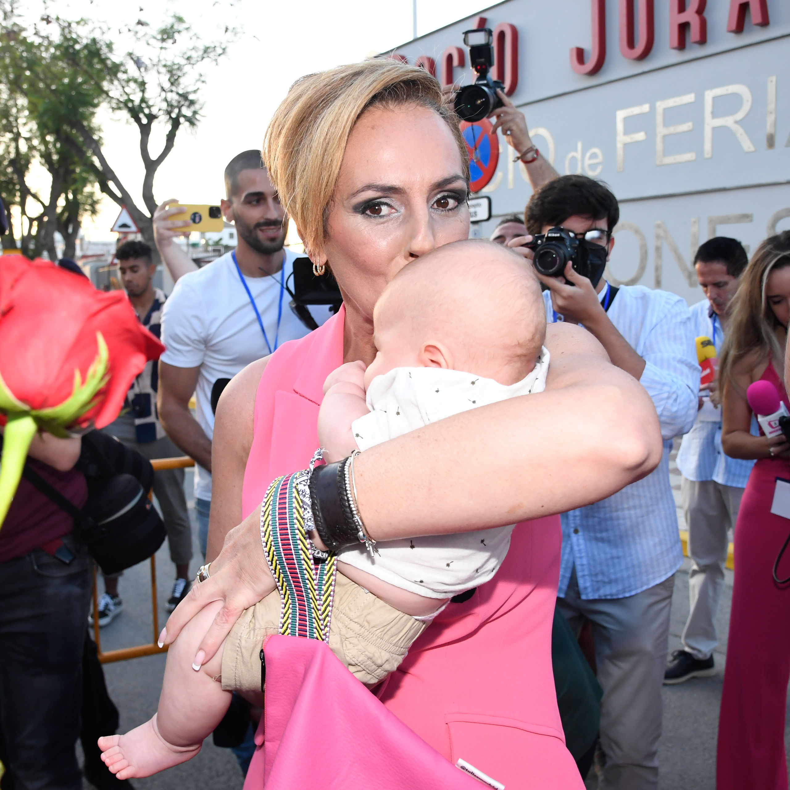 Tal fue el fervor de algunos asistentes por Rocío Carrasco, que tuvo que bendecir con un beso a algún que otro bebé.
