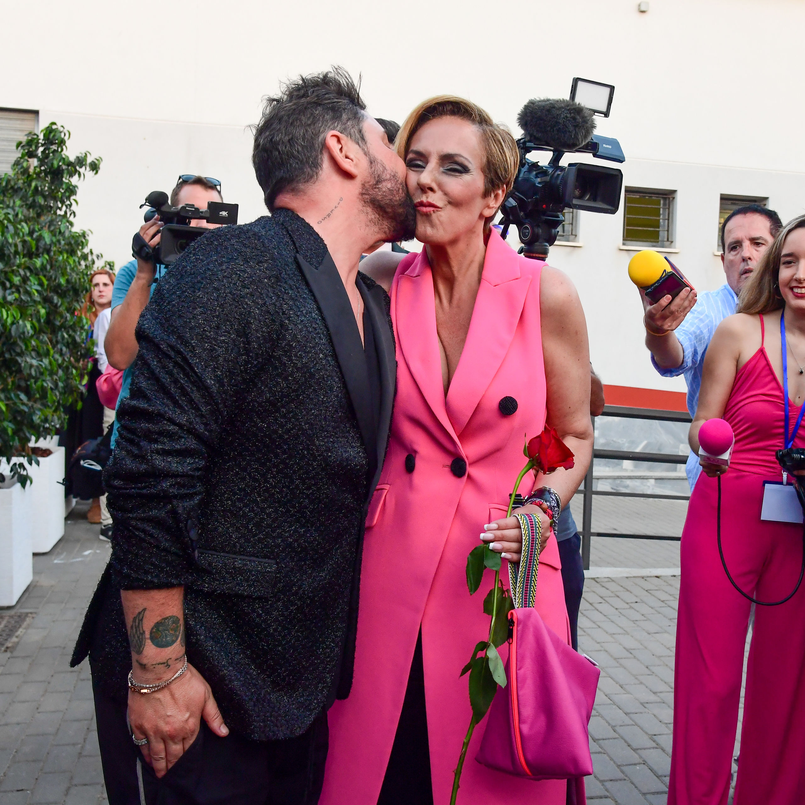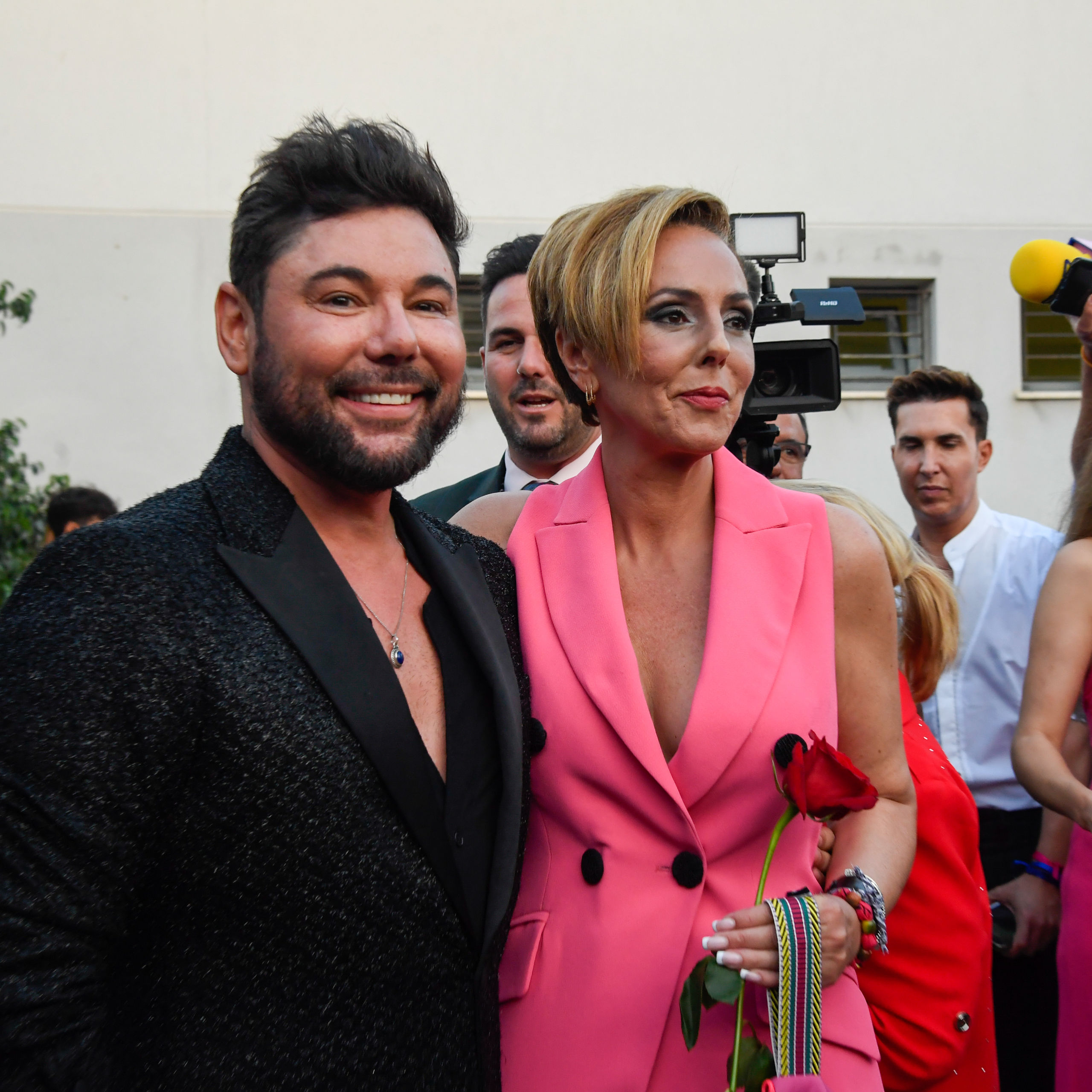 De fucsia, como no, el color que la ha convertido en un símbolo para algunas feministas desde el estreno de la primera parte de su docuserie, Rocío Carrasco ejerció de maestra de ceremonias junto a su inseparable marido Fidel Albiac, que aunque intentó mantenerse en un segundo plano, los gestos cariñosos hacia su mujer acapararon todas la miradas.