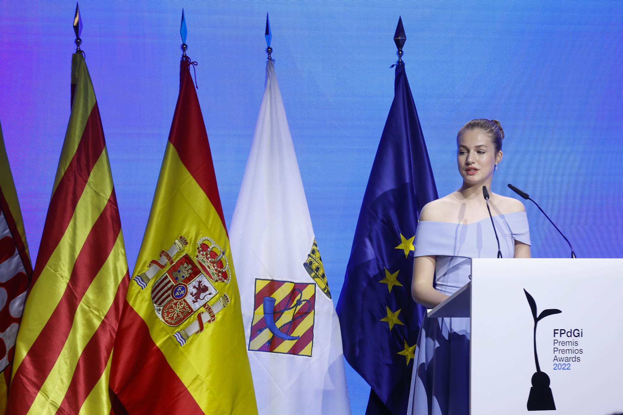 "Los tiempos que vivimos son exigentes", ha asegurado la heredera al trono en su intervención en la ceremonia de los Premios Princesa de Gerona celebrada en al Museo de las Aguas de la Fundación Agbar, en la localidad barcelonesa de Cornellà de Llobregat, con la presencia de los reyes y la infanta Sofía y sin ningún representante de la Generalidad.