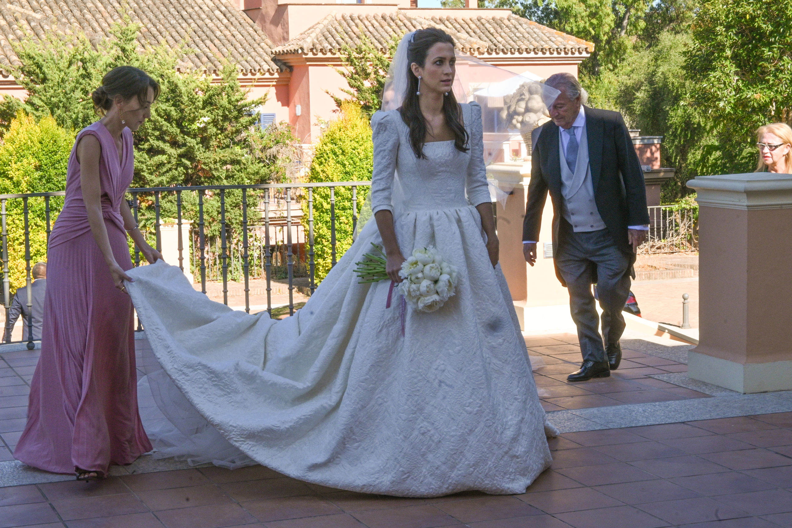 La novia ha desfilado en la Iglesia de Nuestra Señora de la Merced de Sotogrande (Cádiz) del brazo de su padre, el arquitecto Nicolás Fernández.