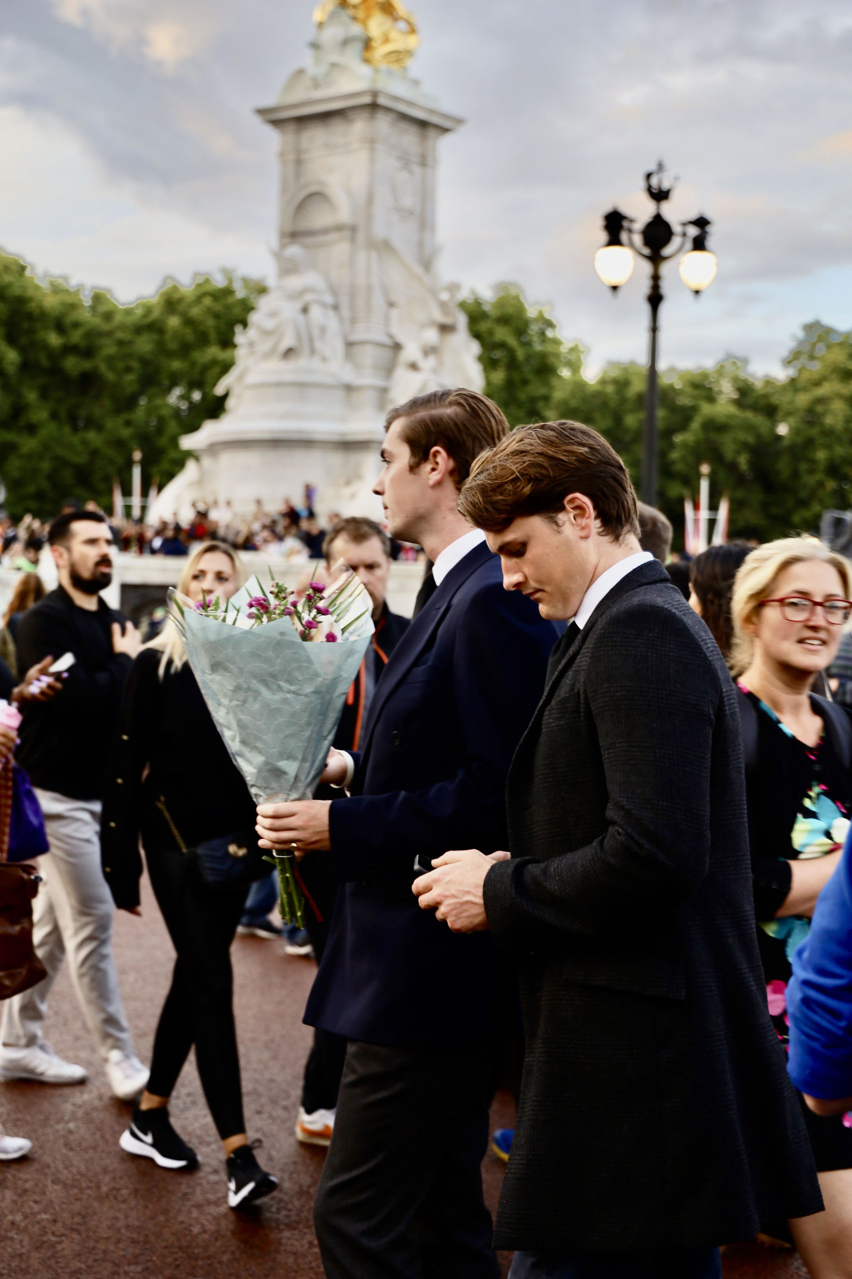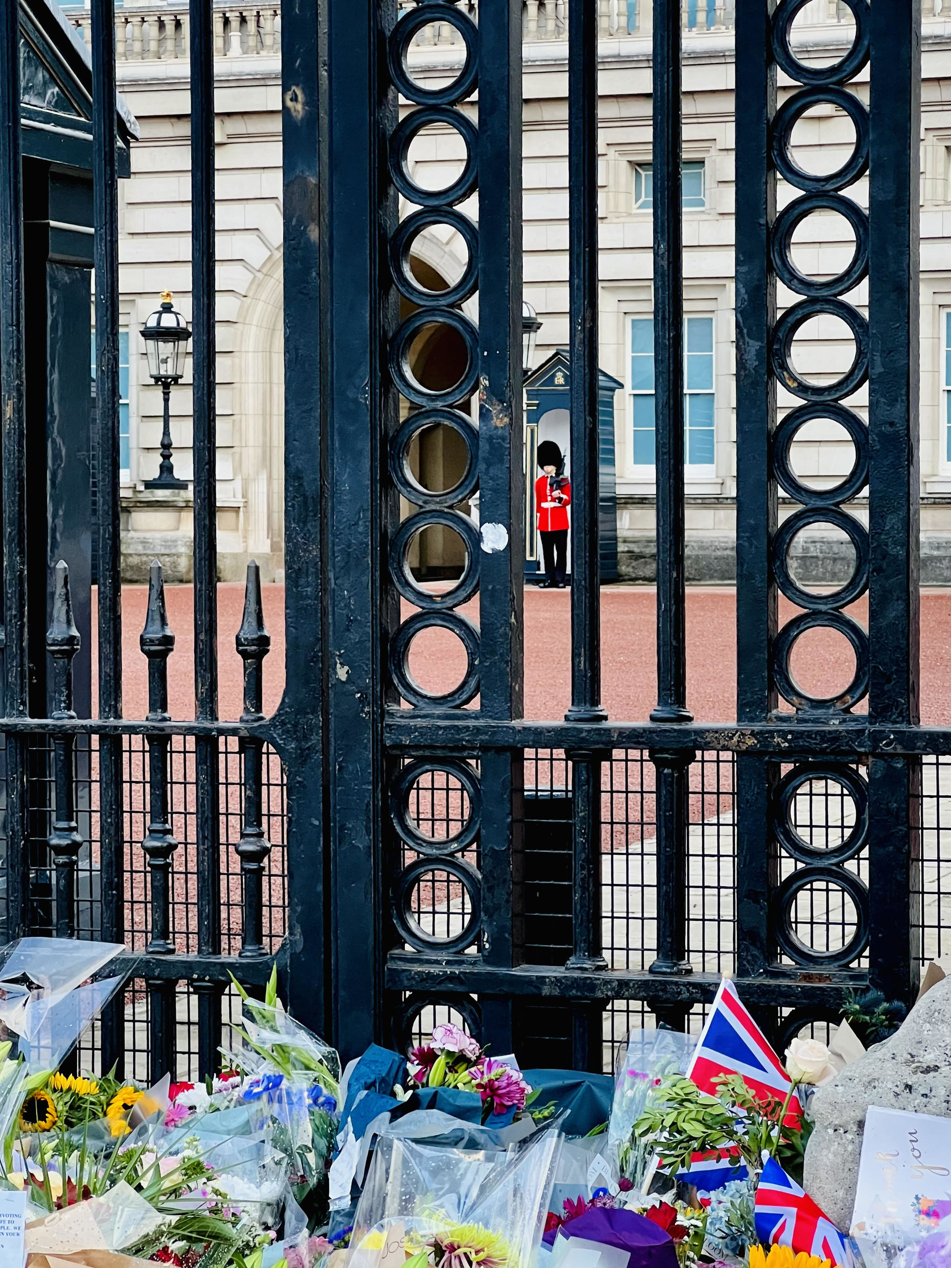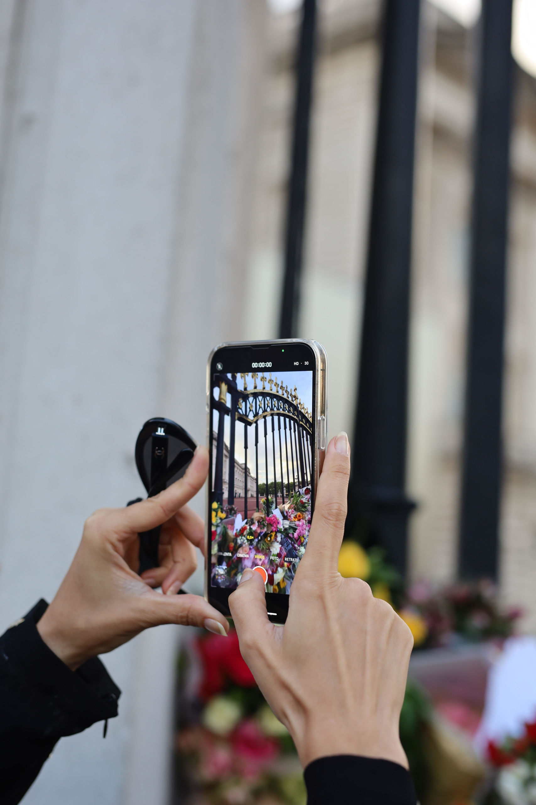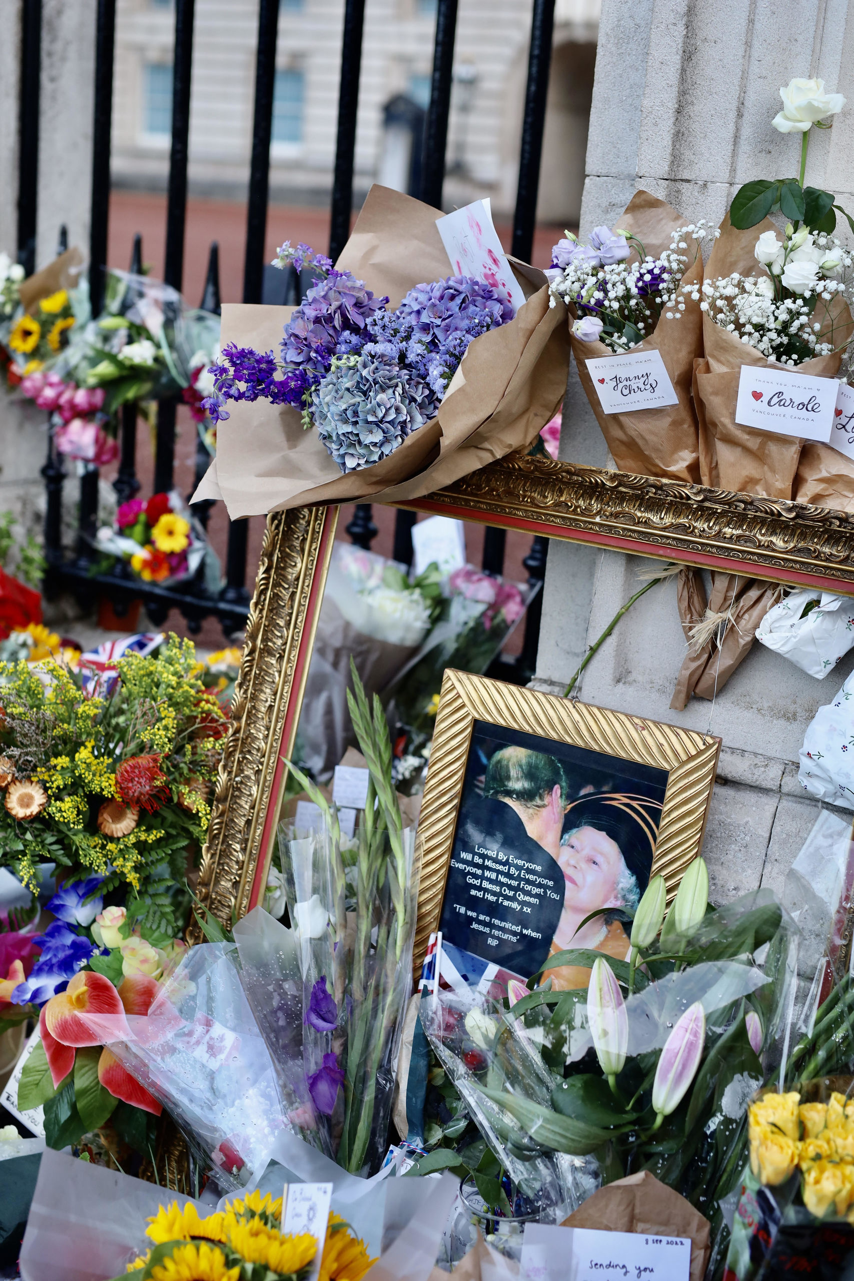 La verja del palacio real despertó ya impregnada de flores y mensajes de agradecimiento a Isabel II. Desde el anuncio de su fallecimiento, la ciudad entera se ha movilizado hacia el céntrico monumento para vivir una ocasión histórica y una despedida que se alargará durante varios días.