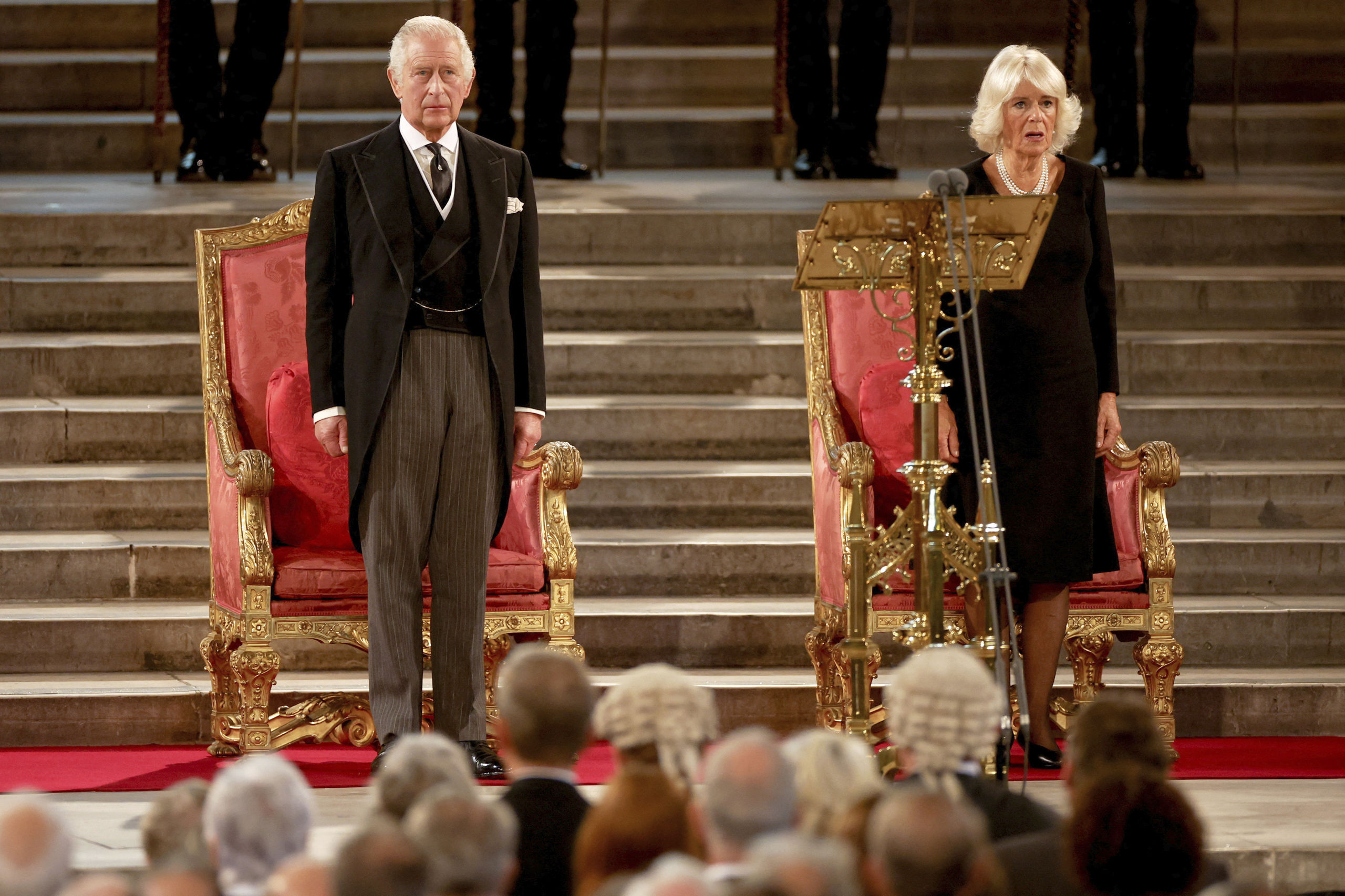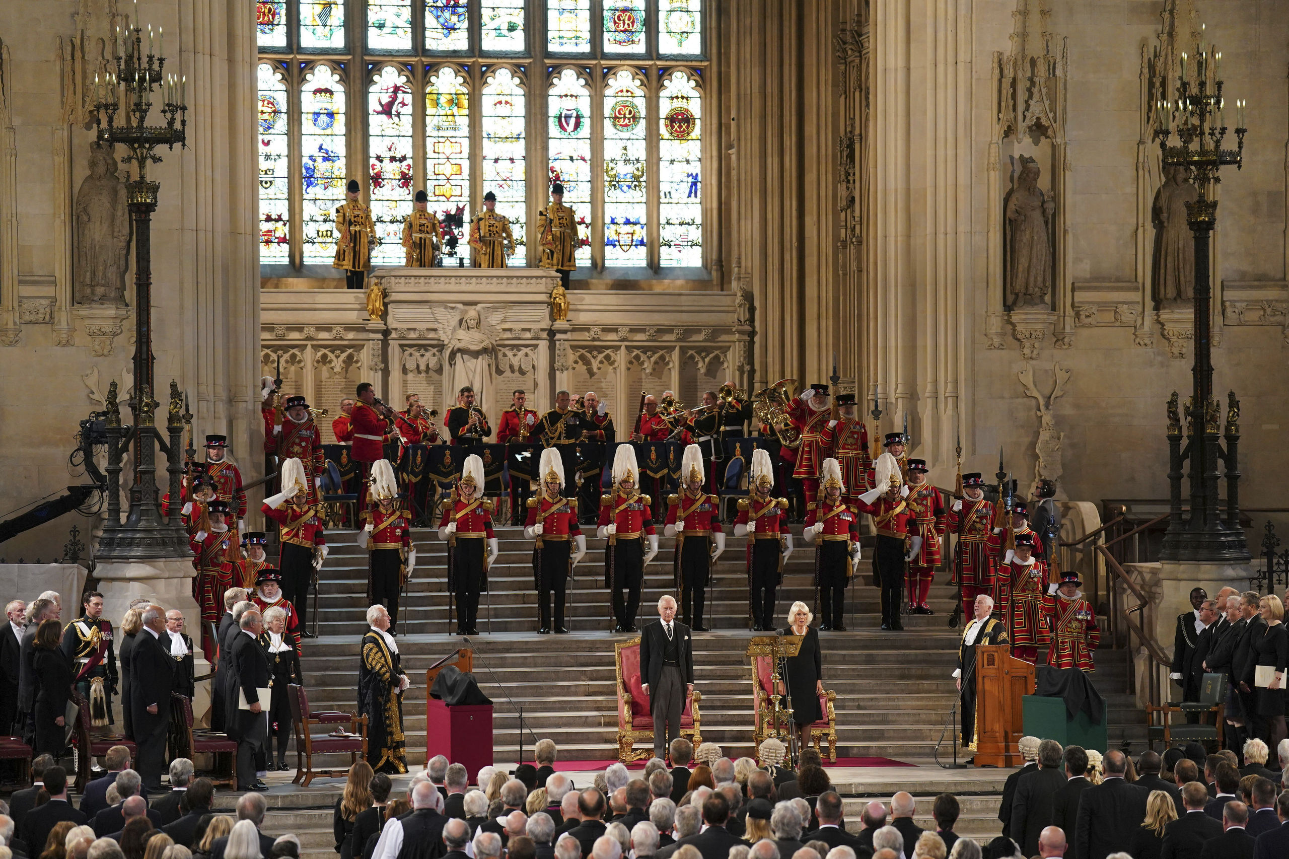 Carlos III recordó el legado de la soberana, fallecida el pasado jueves a los 96 años, en respuesta a los mensajes de condolencia que previamente le transmitieron los presidentes de la Cámara de los Lores (alta), John McFall, y los Comunes (baja), Lindsay Hoyle, en el edificio de Westminster Hall.