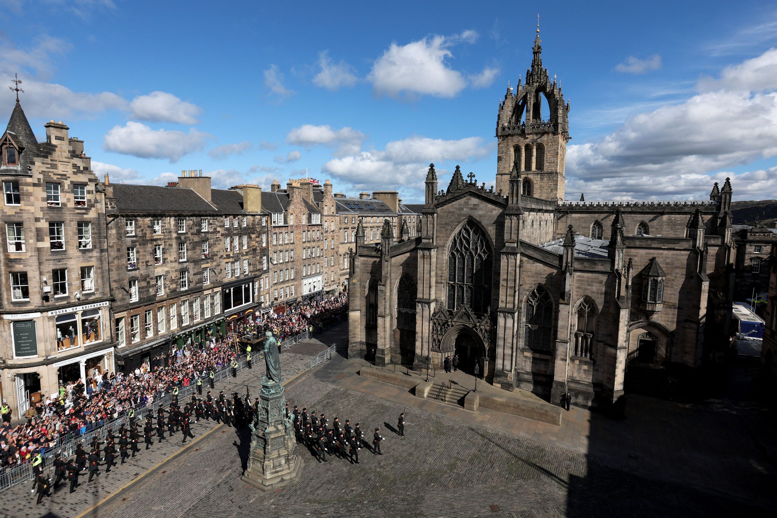A ambos lados de la avenida Royal Mile, por donde transitó el cortejo, miles de personas, que desde muy temprano ocuparon sus lugares detrás de las barreras levantadas por la policía, sacaban fotografías con sus teléfonos móviles pero nadie aplaudía.