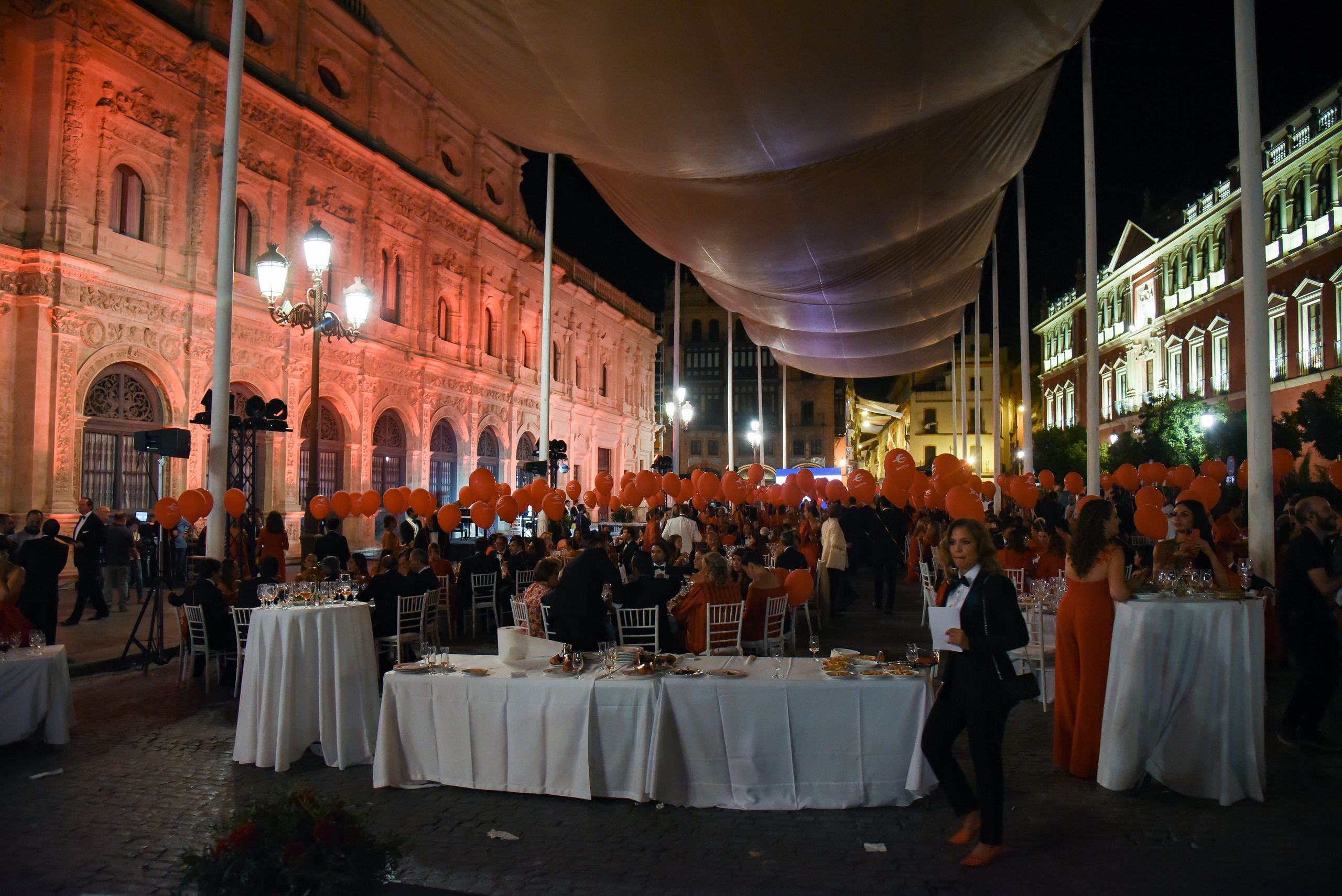 Un año más la revista social sevillana Escaparate, a cuyo frente está el periodista Mario Niebla del Toro, organizó su decimosexta edición, que se ha convertido en todo un clásico para despedir el verano y dar la bienvenido al otoño. El lugar elegido, la plaza de San Francisco, que acogió a mas de 400 invitados. El "dress code" en esta ocasión era las señoras de largo y traje rojo, y como siempre, los señores de smoking.