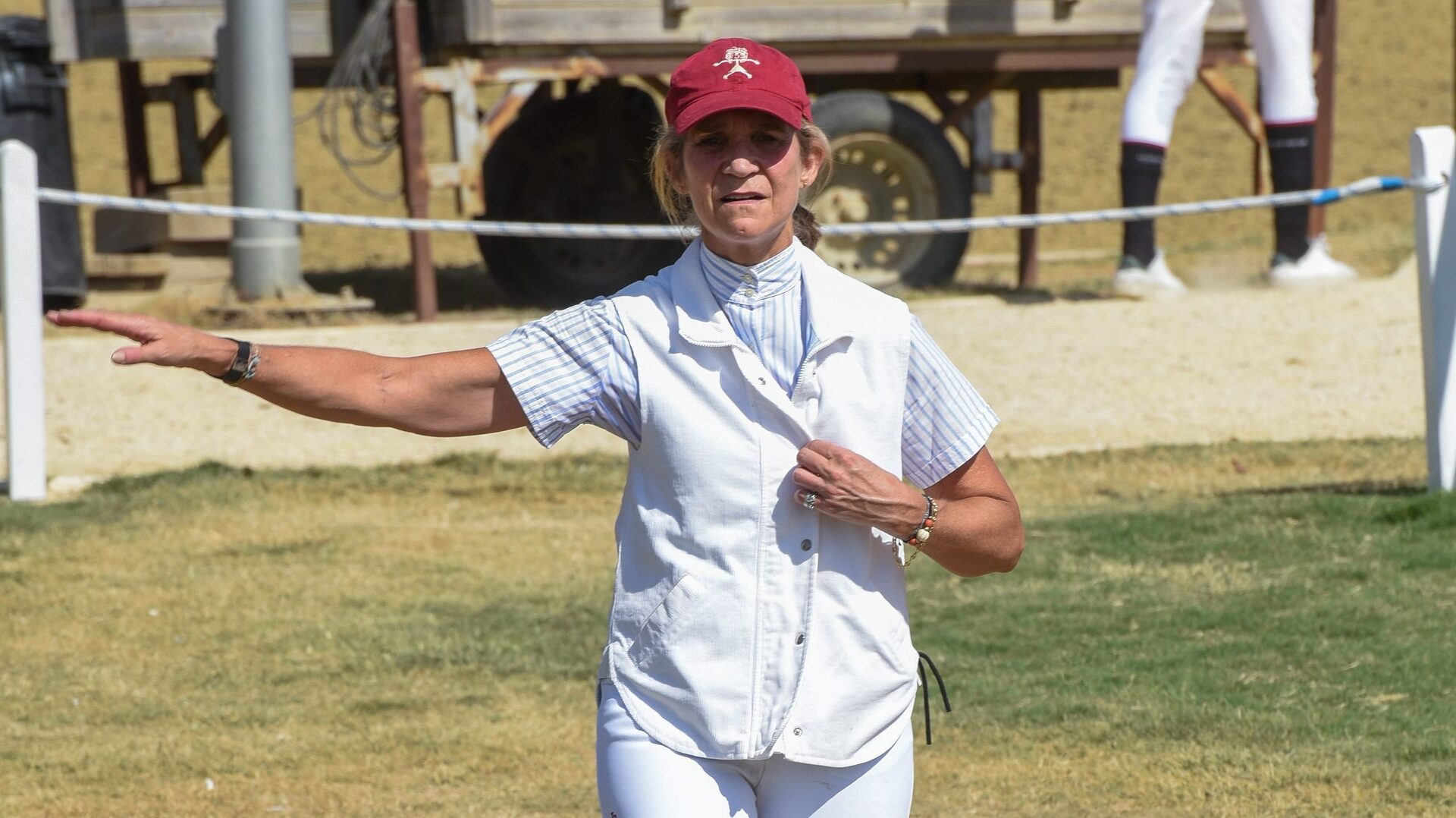 Molesta de que los medios de comunicación estuvieran presentes en la Hípica, la infanta Elena mostró su peor cara con la prensa cuando le dio la enhorabuena por haber participado en el concurso. "¿Me puede dejar ya por favor? No voy a decir nada", dijo muy molesta y añadió con tono frustrante que "ya estoy acabada" ante las cámaras.