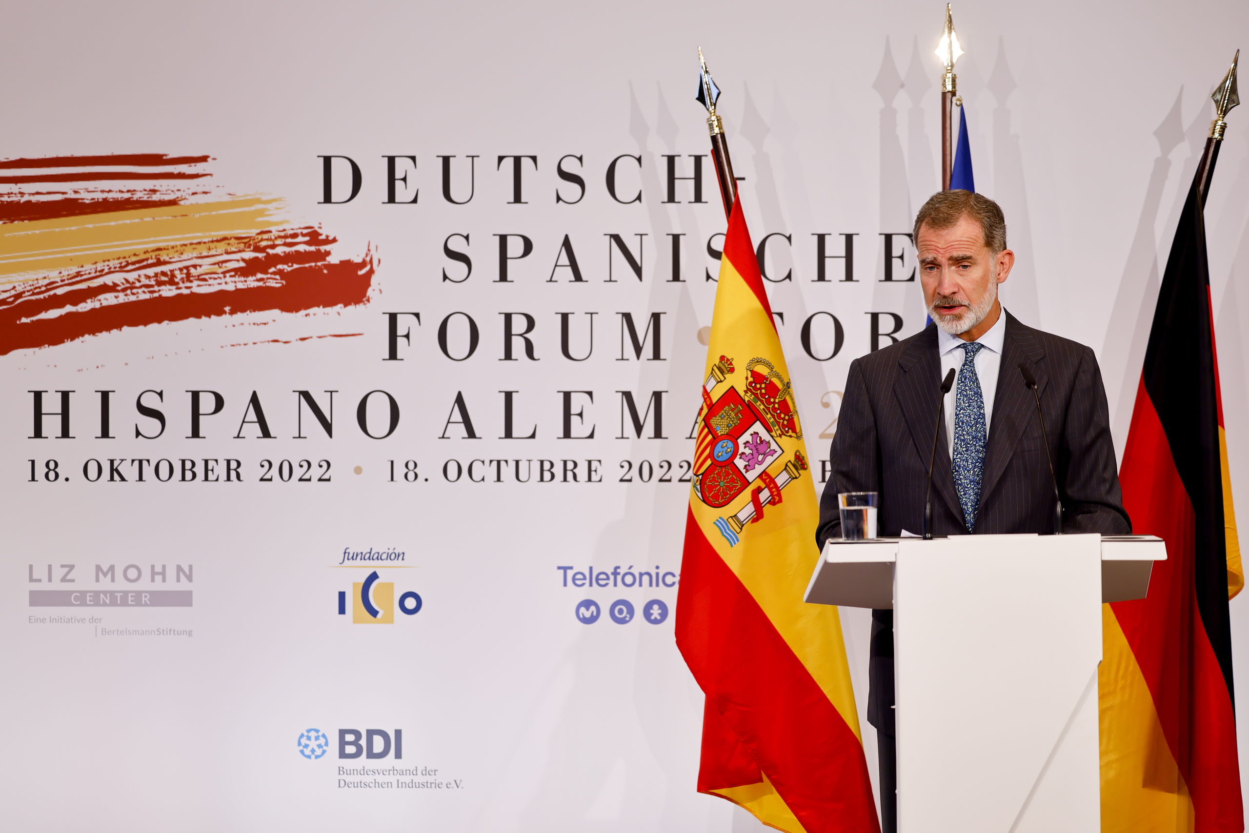 Posteriormente, Don Felipe se trasladó a la Fundación Bertelsmann donde, junto al Presidente alemán, presidieron un encuentro empresarial Hispano-Alemán, que ha sido planificado para ser una plataforma bilateral regular de intercambio entre Alemania y España, organizada por Bertelsmann Stiftung en cooperación con los socios españoles del proyecto.