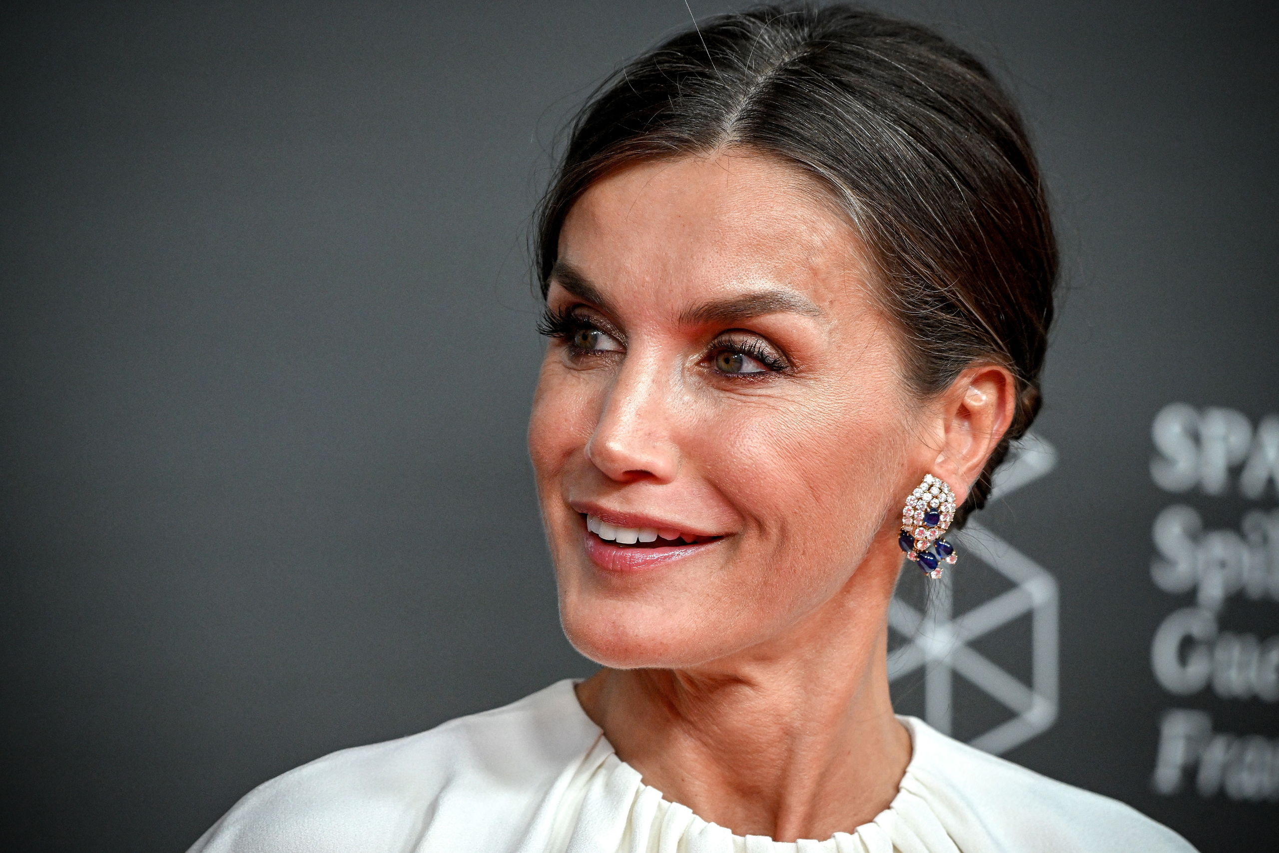 Por la tarde doña Letizia lució unos bonitos pendientes de diamantes y zafiros que pertenecen al joyero real y que la reina emérita Sofía también ha utilizado.