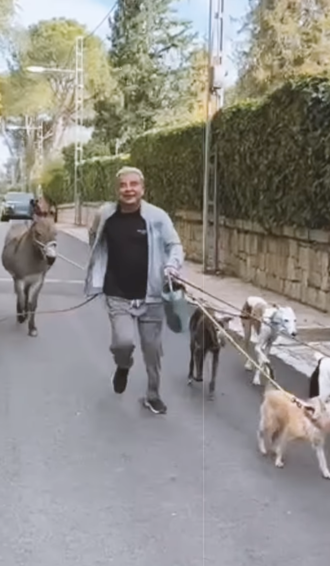 Durante estos días Jorge Javier ha publicado en redes vídeos por su urbanización presumiendo de burro y galgos, paseando por las calles de su barrio. El nombre del animal es Fortunato.