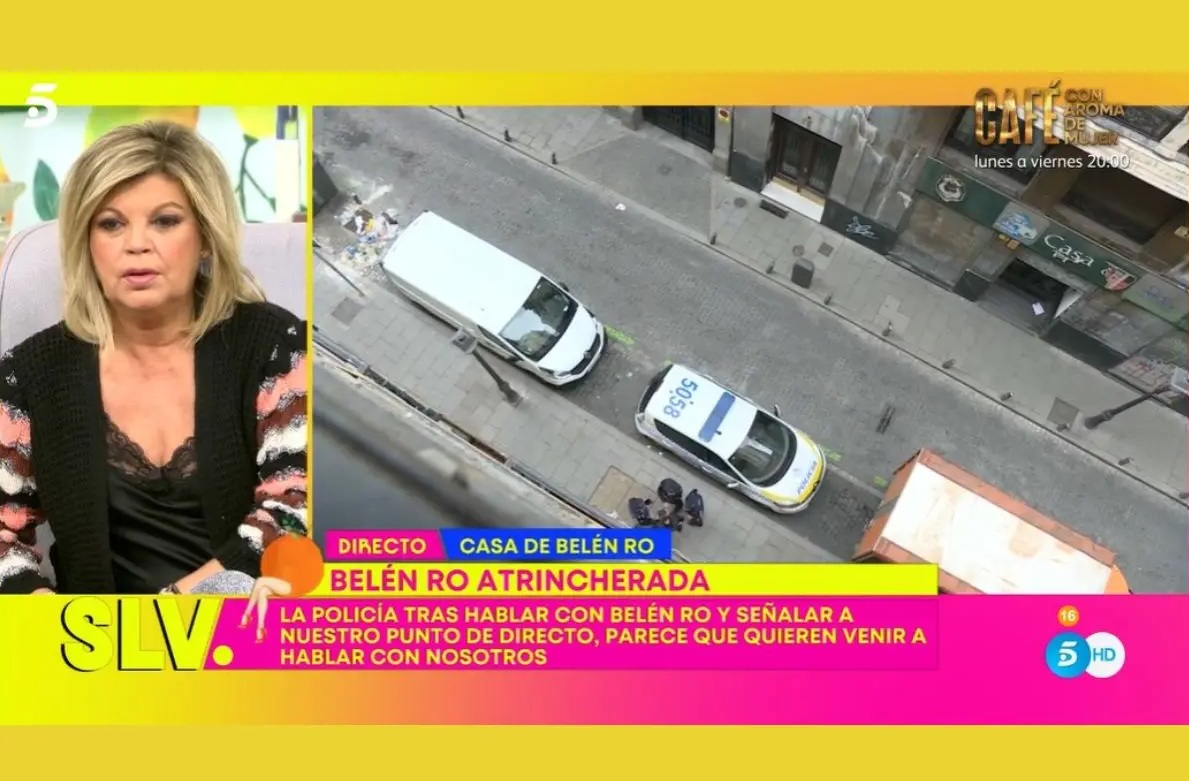 Sobre las cinco de la tarde, la colaboradora no pudo aguantar más la presión y decidió pedir auxilio: "La Policía está llegando", avisó Kike Calleja, avivando el show. "Han encendido las luces, creo que la Policía está arriba y va a controlar si estamos grabando", añadió desde el balcón. Con el paso de los minutos la tensión fue en aumento y los miembros de seguridad del estado pidió la identificación al equipo del programa que se había trasladado hasta allí. Por su parte, Belén bajó las persianas de su hogar para evitar ser captada.