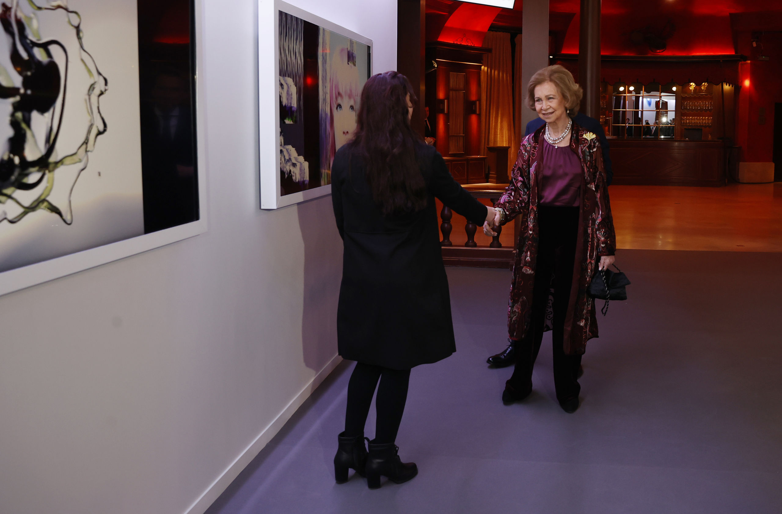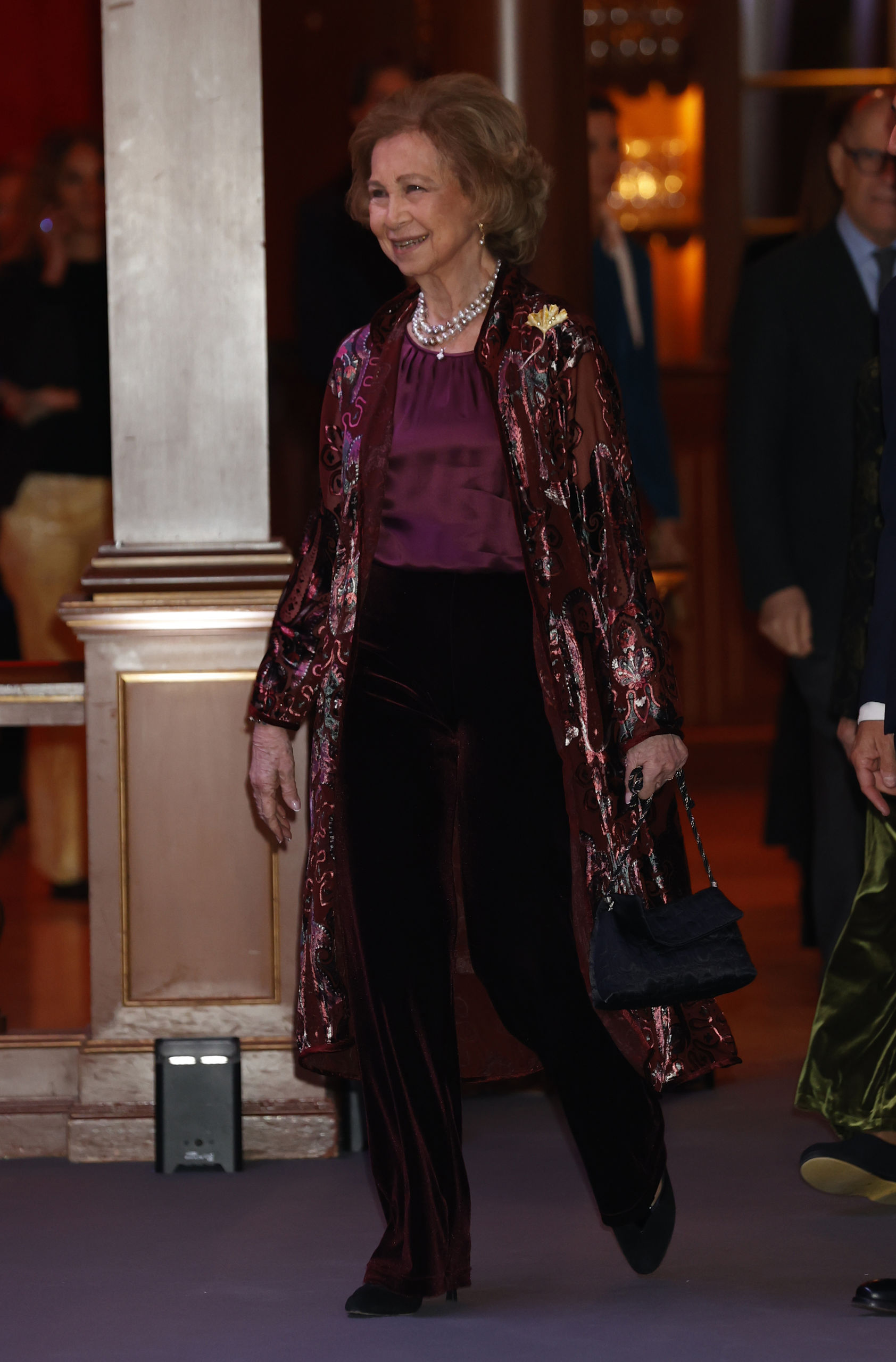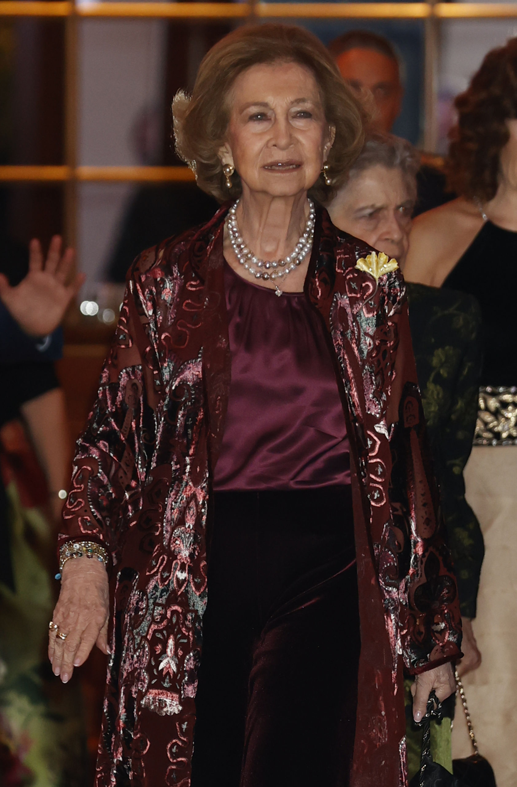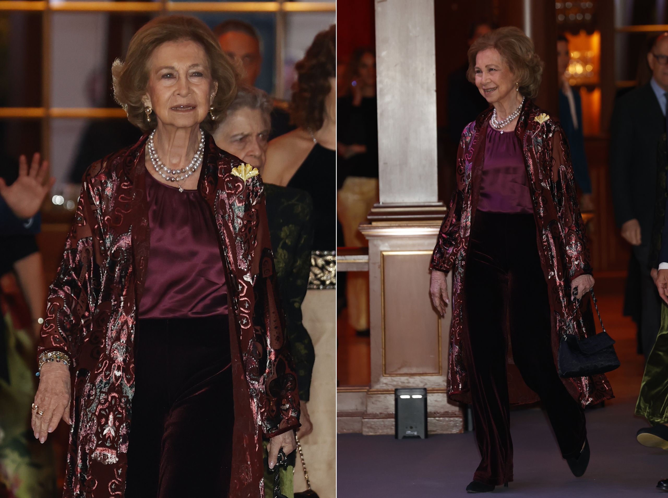 Acompañada por su hermana Irene de Grecia - uno de sus grandes apoyos - y de lo más elegante con un kimono bordado en tonos burdeos, top de seda en lila y pantalón oscuro de terciopelo, la monarca ha entregado uno de los galardones artísticos más prestigiosos del momento en una noche única en la que coincidió con numerosas celebrities y en la que dejó claro que está completamente al margen del controvertido podcast de Corinna Larsen.