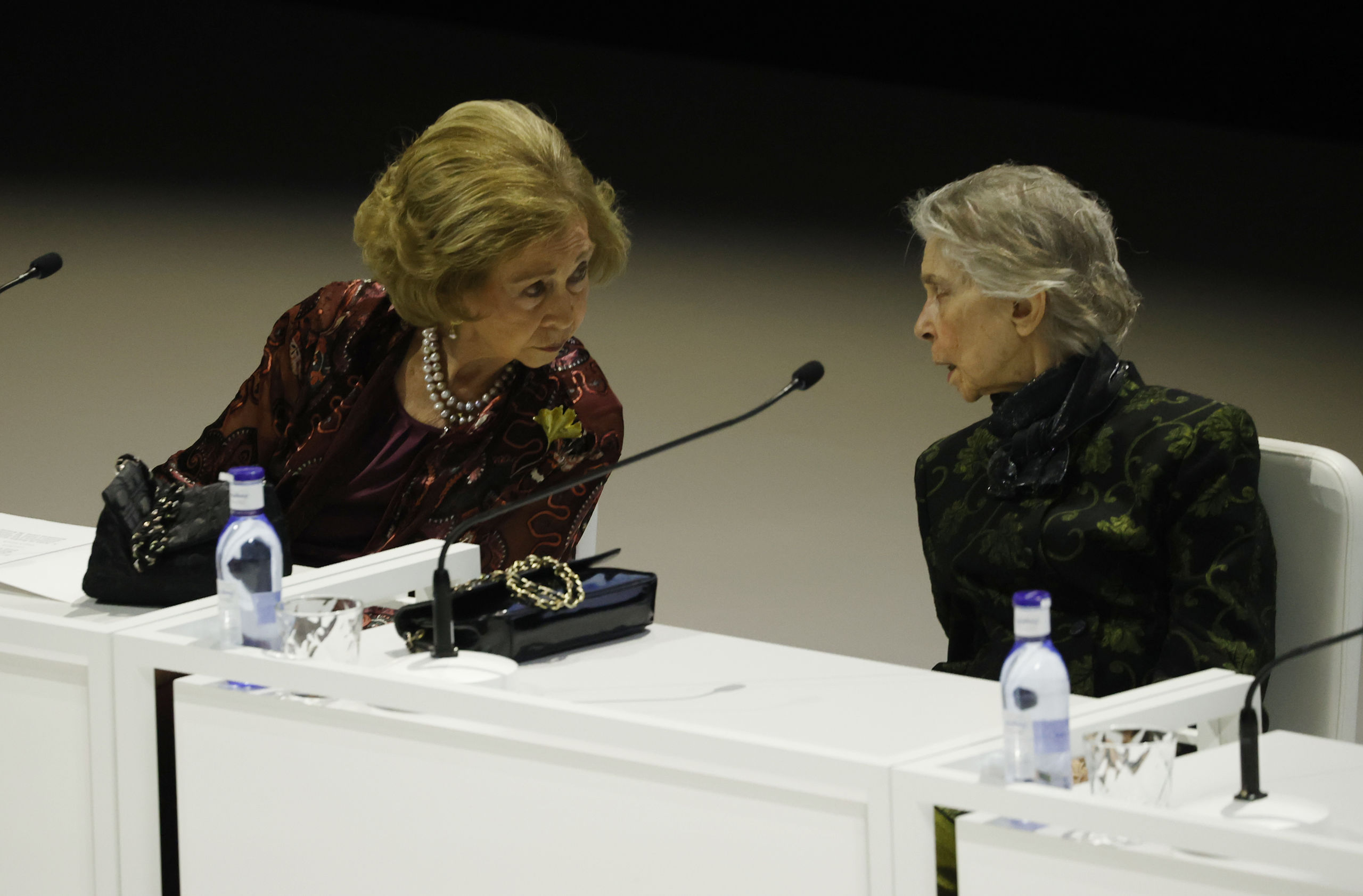 Este martes 22 de noviembre, doña Sofía ha continuado con su agenda oficial a pesar de todo lo que está contando Corinna Larsen en su pódcast. Haciendo oídos sordos, la madre del rey Felipe VI, junto a su hermana Irene de Grecia, acudían a la entrega de la XXXVII edición del Premio BMW de Pintura en el Teatro Real de Madrid.