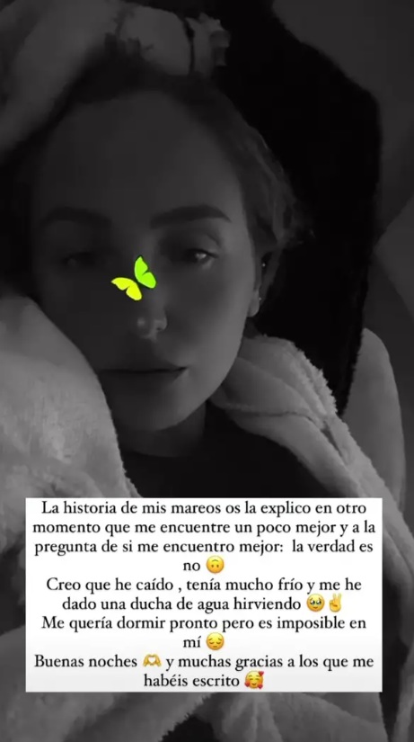 Su confesión despertó la preocupación de los usuarios de las redes sociales, que le hicieron llegar multitud de mensajes de apoyo y cariño. Gesto que ella aprovechó para confesar que sufre un problema "con los mareos" que contará "en otro momento", cuando esté recuperada: "La historia de mis mareos ya os la cuento en otro momento que me encuentre mejor. Y a la pregunta de si me encuentro mejor, la respuesta es ‘no’", aclaró en una historia de Instagram.