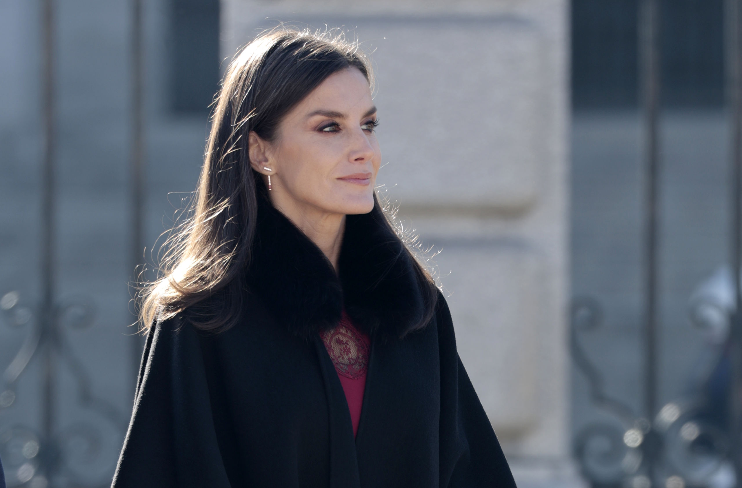 En un día tan frío como el de este 6 de enero de 2023, Letizia se ha cubierto con una capa de Carolina Herrera durante su estancia en el Patio de Armas del Palacio Real. Esta capa está creada con cuello sintético y lo ha lucido en más de una ocasión.