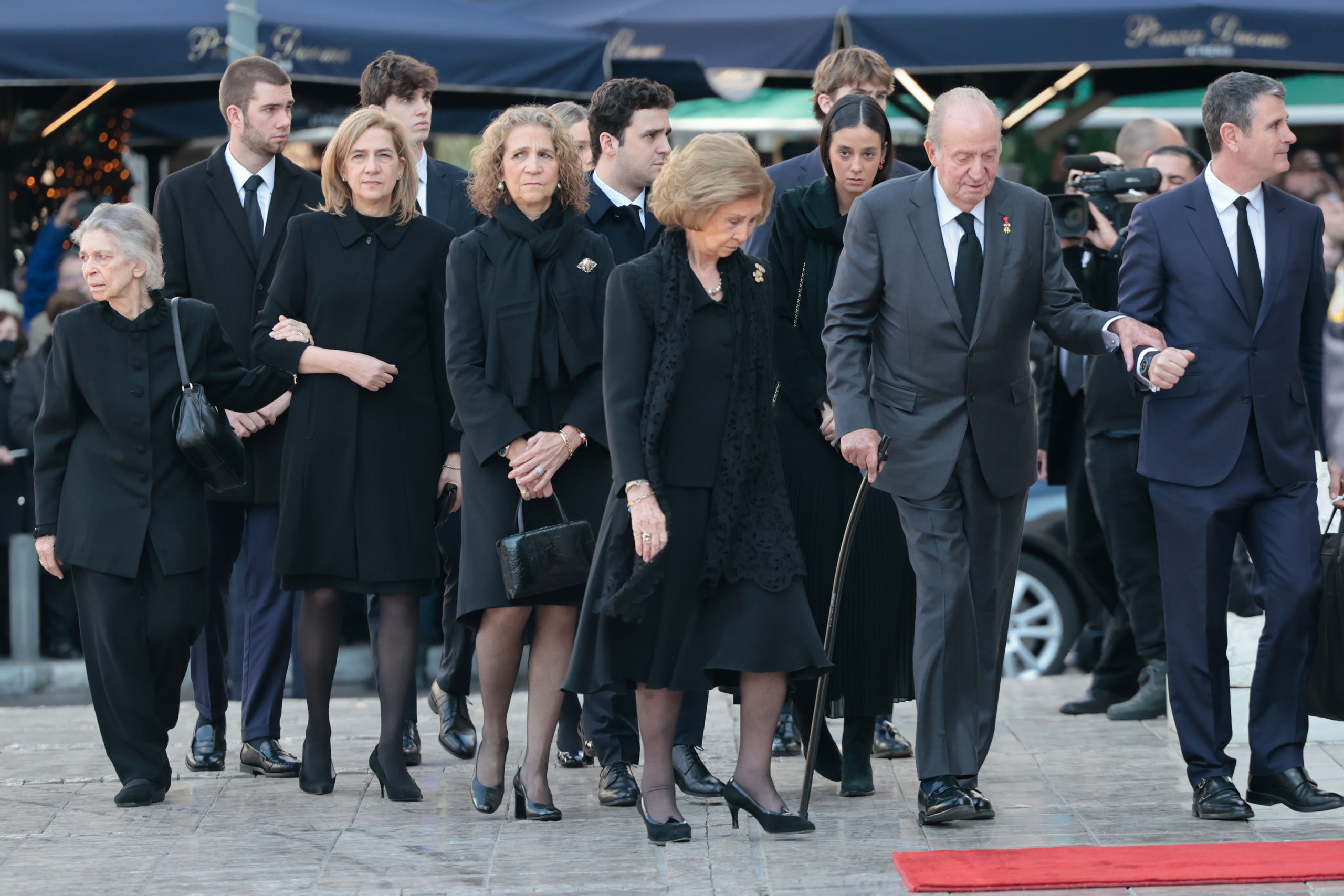 También acudieron el rey emérito Juan Carlos y la reina Sofía, que llegaron juntos, así como la hermana de doña Sofía, Irene de Grecia, las infantas Elena y Cristina y los hijos de éstas. A su llegada, se oyeron vítores de “¡Sofía! ¡Sofía!".